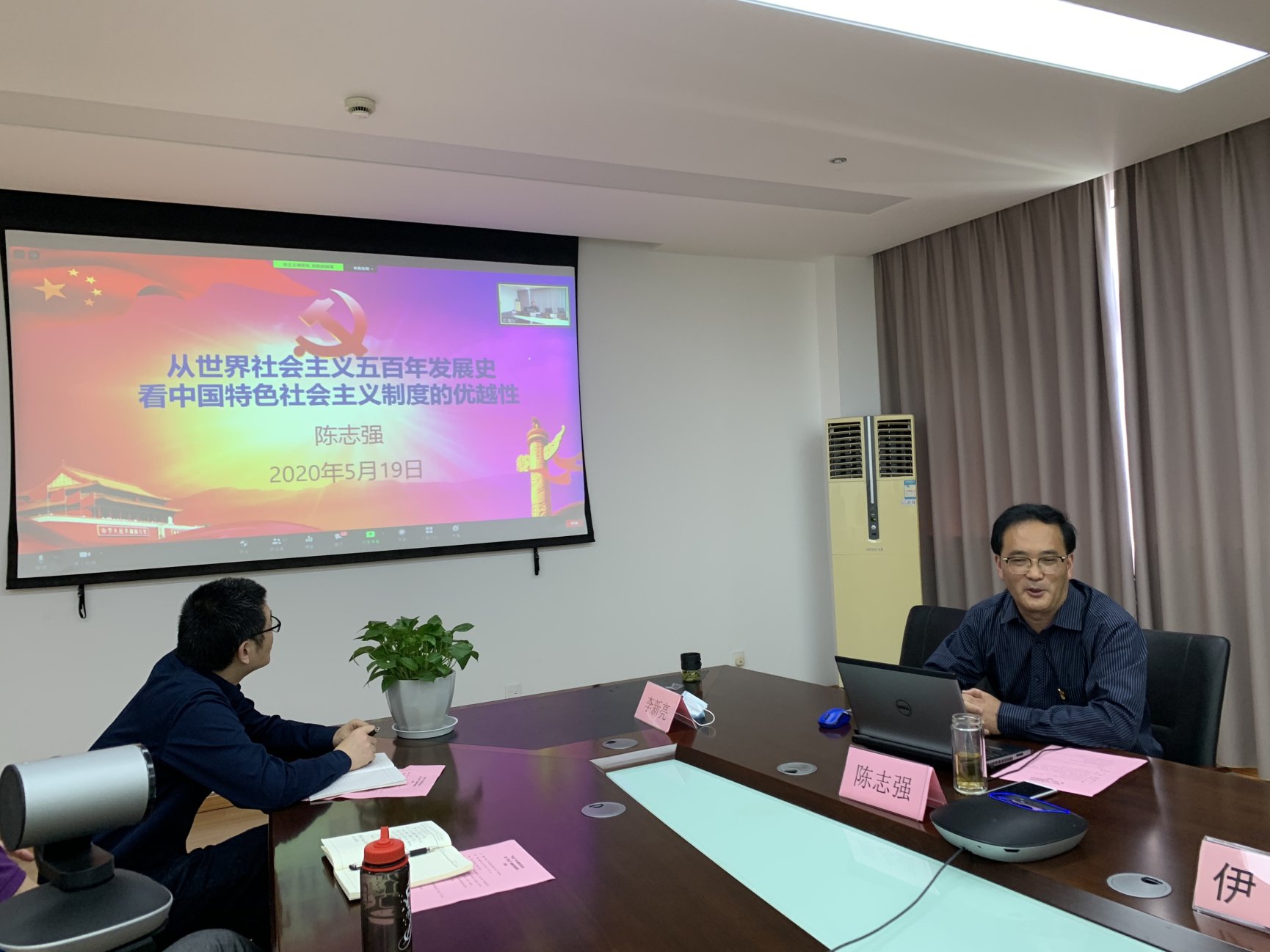 马克思主义学院陈志强教授受邀给马克思主义学院直属党支部、财务金融学院党总支全体党员进行“四史”学习教育第一讲。他以《从世界社会主义500年发展史看中国特色社会主义的制度优势》为主题,从世界社会主义500年发展史说明了马克思主义是科学、是真理,揭示了三大规律,指引人类的发展方向;中国共产党具有革命性、人民性、先进性和纯洁性,具有坚定的理想信念,从而获得人民的支持,赢得革命的胜利,渡过建设的难关,迎来改革的辉煌;中国特色社会主义是适合中国国情、具有中国特色,推动改革开放、促进共同发展,吸收文明成果、兼收并蓄超越,发挥制度优势、体现“四个自信”等方面,解读世界社会主义500年发展史说明了什么、中国特色社会主义的特点、中国特色社会主义制度的优势。