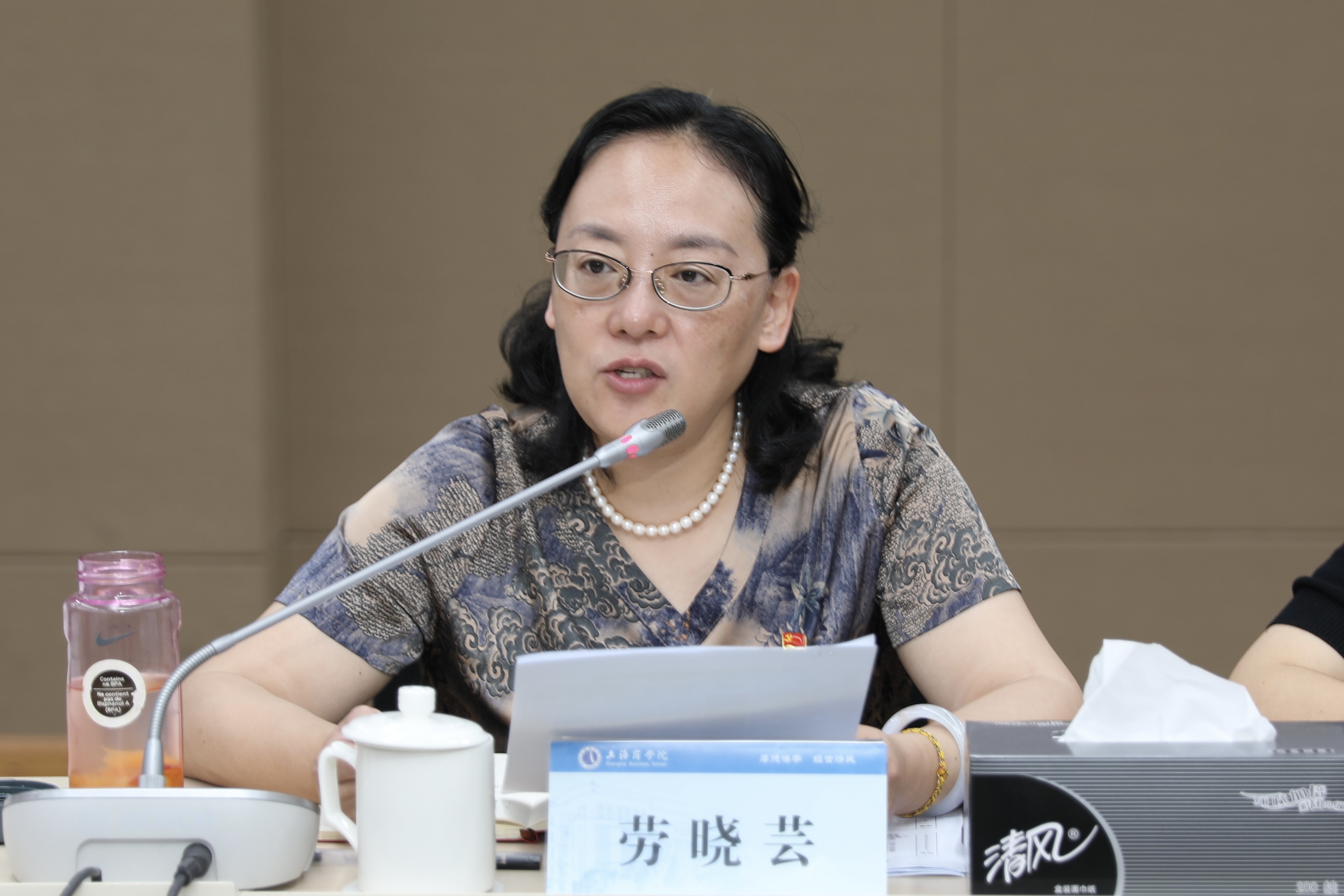 图为党委副书记、副校长劳晓芸部署安全稳定、学生就业等相关工作