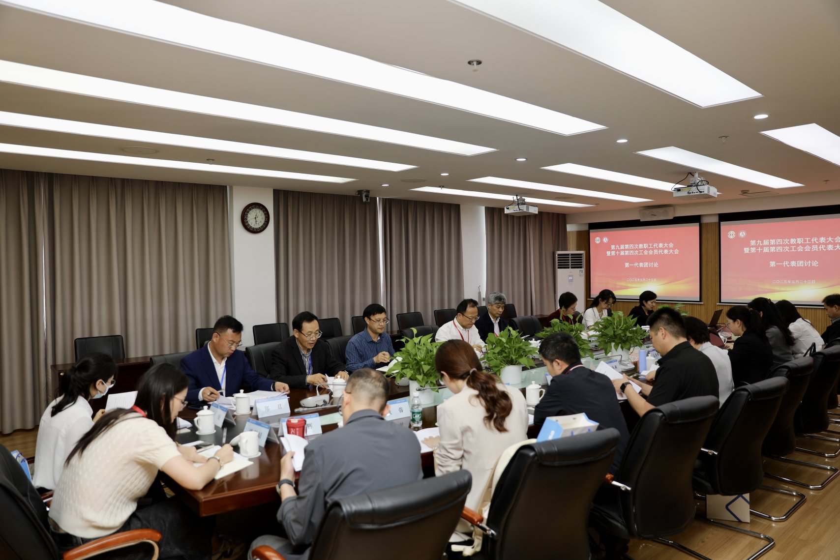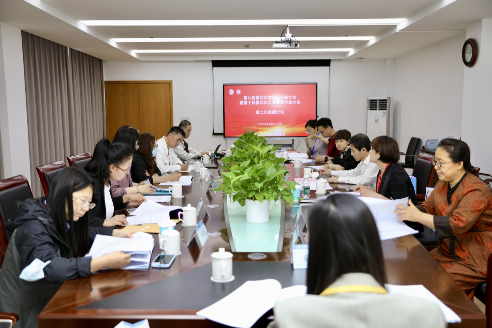 图为代表团进行分组讨论和审议