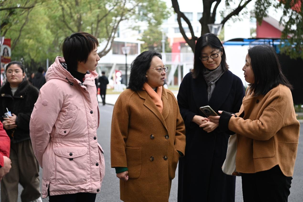 图为党委书记沈大明、纪委书记张洁带队进行教学检查