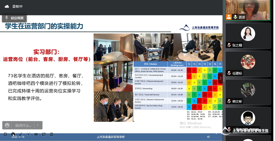 此次会议共分四个议程,分别是嘉宾致辞、学院基本简介、本科课程项目整体介绍、专业培养方案介绍、学院实习工作介绍、高端酒店人力资源专题研讨和2022高端酒店HRD联盟成立仪式及云合影环节。