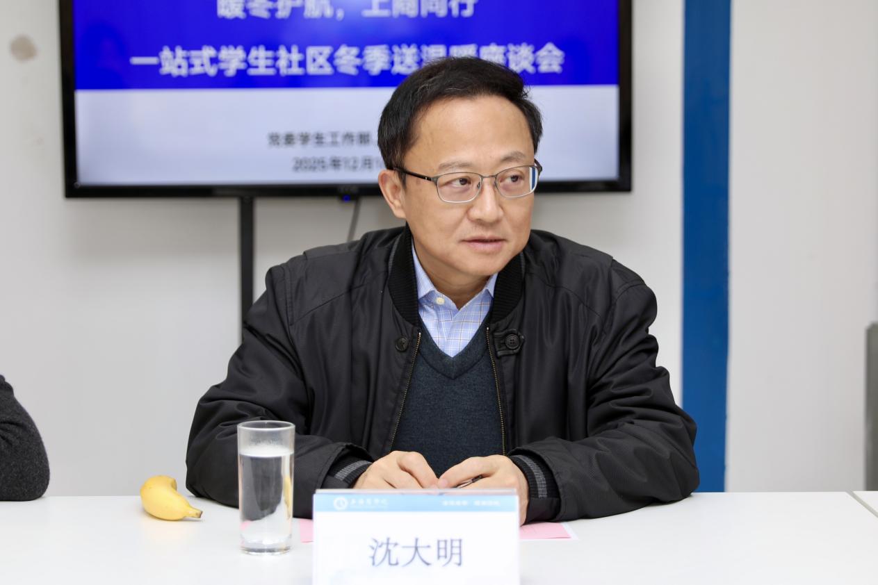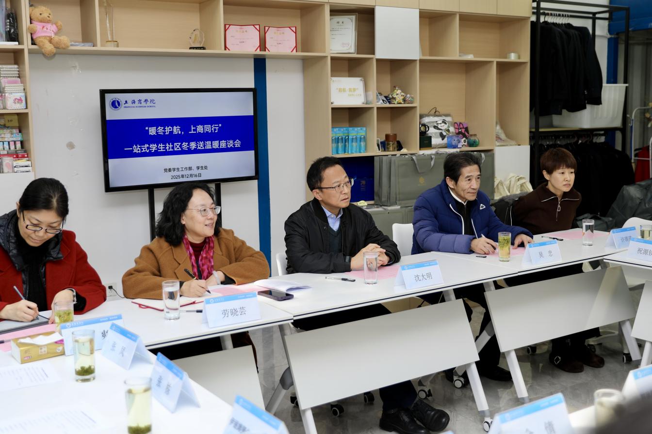 凛冬已至,温情不减。12月16日,我校在奉浦校区一站式学生社区爱心屋举办“暖冬护航 上商同行”冬季送温暖座谈会。校党委书记沈大明,校党委副书记、校长吴忠,校党委副书记、副校长劳晓芸出席会议,相关职能部门负责人与同学们齐聚一堂,共话成长。座谈会由劳晓芸主持。
