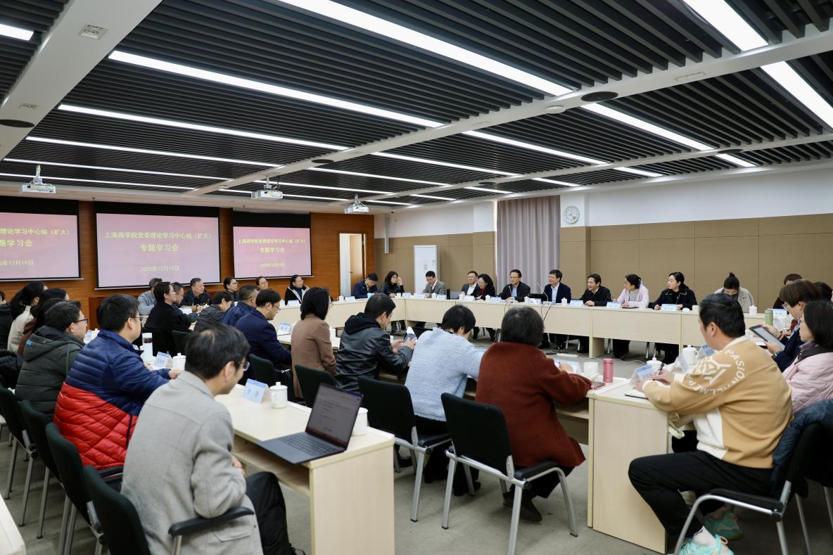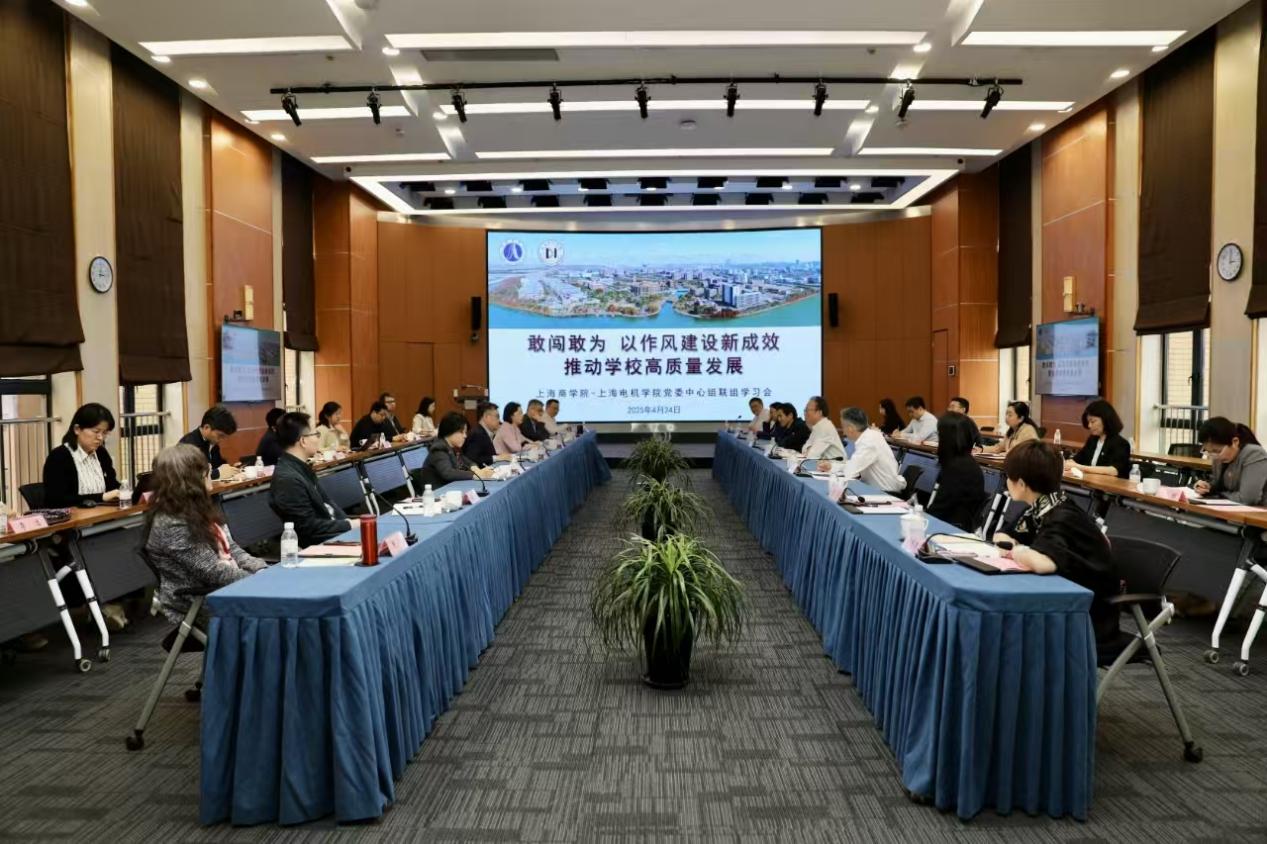 图为上海商学院与上海电机学院开展党委中心组联组学习