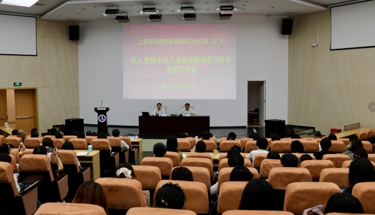 坚定理想信念是终身课题,要常学常新、深思深研。2025年,上海商学院以习近平新时代中国特色社会主义思想为指导,充分发挥党委常委会第一议题“及时学”和党委中心组“带头学”的作用,聚焦深入贯彻中央八项规定精神学习教育,重点围绕党的二十届四中全会精神,深入学习领会习近平总书记关于加强党的作风建设的重要论述、关于教育的重要论述,扎实开展理论学习与研讨交流。“援外培训中如何讲好‘中国故事’”案例成功入选上海干部教育“四个一百”资源库建设。