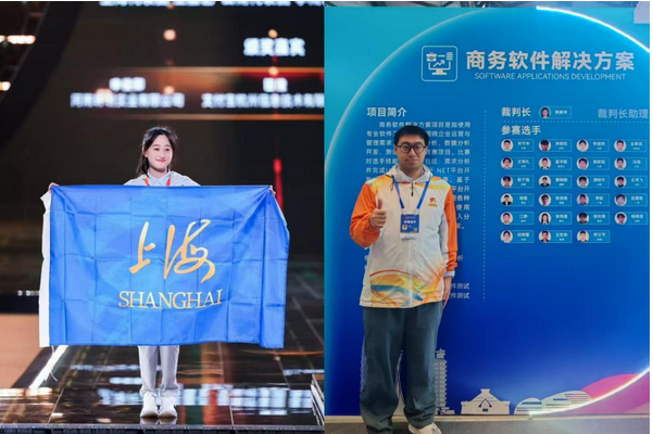 图为酒店接待项目选手王嘉艺(左图)、商务软件解决项目选手黄斯恺(右图)