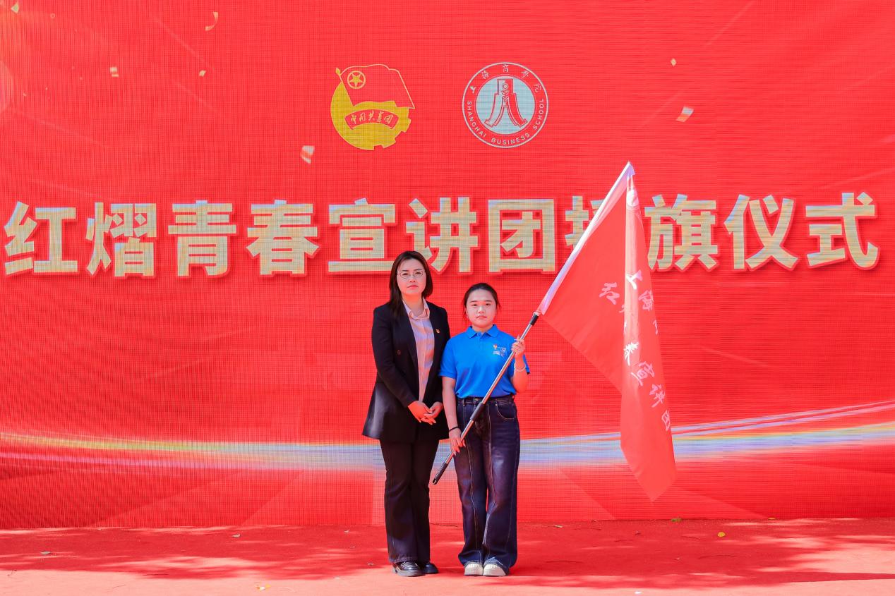 以科技之笔绘青春底色,以创新之魂铸思政新篇。马克思主义学院副院长张冰为红熠青春大学生理论宣讲团成员代表黄祖蓉授旗。该理论宣讲团扎根于漕宝路校区的“中共一大新媒体与元宇宙实验室”,汲取上海丰富的红色传统与商业文化养分,以“红色商业史”为线索,运用元宇宙、VR等先进数字技术,打造“听得懂、记得住、传得开”的思政育人精品,与上海市中小学携手开展“行走的思政课”,推动大中小一体化思政教育向纵深发展。
