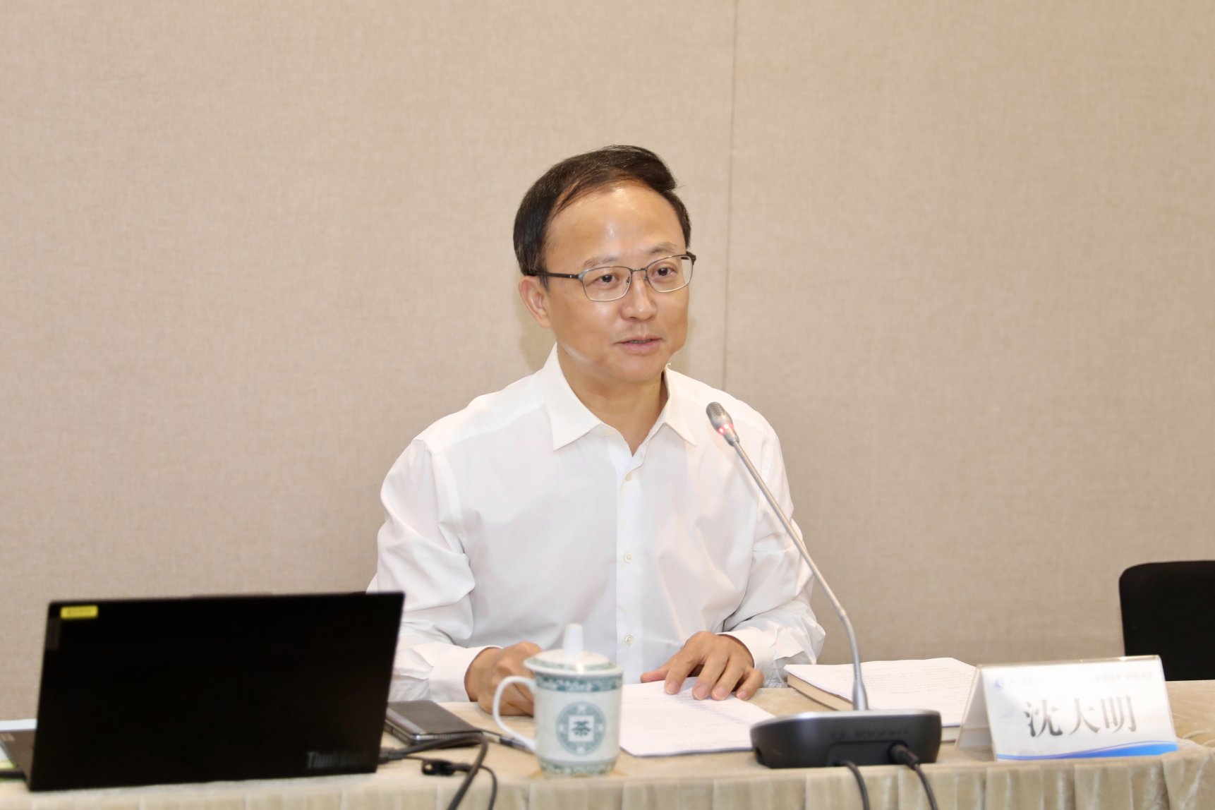 沈大明以《加强党性修养,锤炼优良作风》为题,从三个层面为毕业生党员带来了一场生动而精彩的专题党课。一是全面学习、精准阐释。他带领师生回顾了党的十八大以来习近平总书记关于作风建设的重要论述,学习了中央八项规定精神的主要内容,精准阐释了其重大意义及核心实质。二是理实结合、深入剖析,结合当下社会热点和实际案例,深入剖析中央八项规定为什么是“新时代党的徙木立信之举”,全面论述了“八项规定改变了中国”这一历史性论断, 从理论实践多维层面论证了“作风建设只有起点,没有终点”。三是提出要求、深情寄语。沈大明要求毕业生党员严格自我要求,养成优良作风,鼓励大家在未来的人生道路上扎根中国大地、践行知行合一,坚持理论学习,加强党性修养,努力成长为堪当民族复兴重任的时代新人。