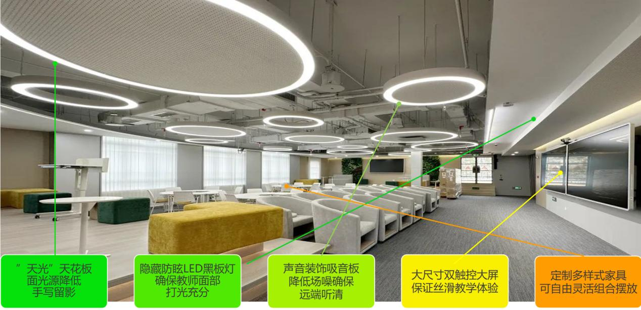 我校漕宝路校区未来数字教学中心,秉持“创新引领、汇智赋能、多元启拓”建设理念,依托 5G、IPV6、AI大模型等前沿技术,构建起“实体+数体+智体”三位一体的新型教学空间,有效解决了传统教学空间利用率低、虚实融合不足、互动效能弱等痛点,致力于打造全国领先的智慧教育示范场景。未来教学中心通过构建OMO混合学术研讨、BYOD分组教学、虚拟仿真教学、智慧学术空间四大AI赋能场景,实现跨国双师课堂,学生自带设备实现多屏协作,AI学情热力图动态反馈知识、酒店管理等虚拟实训场景搭配、AI智能评估等场景应用落地。