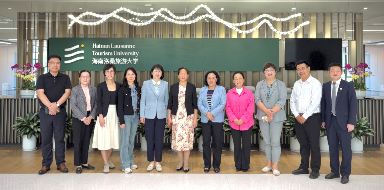 当日下午,考察团赴海南洛桑旅游大学考察交流。校长刘彦、副校长房怀军、吴强,瑞士EHL集团顾问梁辰倩出席接待活动。共同体理事长、锦江国际集团党委副书记刘冬玮、副理事长劳晓芸向海南洛桑的成功举办表示热烈祝贺。刘彦校长对上海商学院、锦江国际集团一行来访表示欢迎,并详细介绍了学校的申报和目前运行情况。劳晓芸表示对海南洛桑旅游大学能进一步把瑞士洛桑模式与中国本土特色相结合所付出的努力和取得的成效表示赞赏,期待双方能共同开发特色课程,共享师资资源,实现优势互补、合作共赢。刘冬玮表示锦江集团针对当前酒店业人才缺口,已与EHL集团在瑞士洛桑、新加坡校区开展管理层、中青年干部培训,与上海洛桑酒店管理学院开展本科层面合作培养,搭建多层次、立体化的酒店人才培训体系,希望在海南搭建更多校企供需合作桥梁。会上,双方聚焦未来国际酒店管理人才培养、师资队伍建设、教学保障体系完善、创新中心建设等议题展开讨论,并就借鉴国际办学经验,加强区域联动达成共识,未来将通过师资共享、课程共建等方式形成区域协同效应,推动学生交流交换,提升人才培养质量。会后,考察团参观海南洛桑旅游大学教学、生活场所,对瑞士标准有了更深入的了解。
