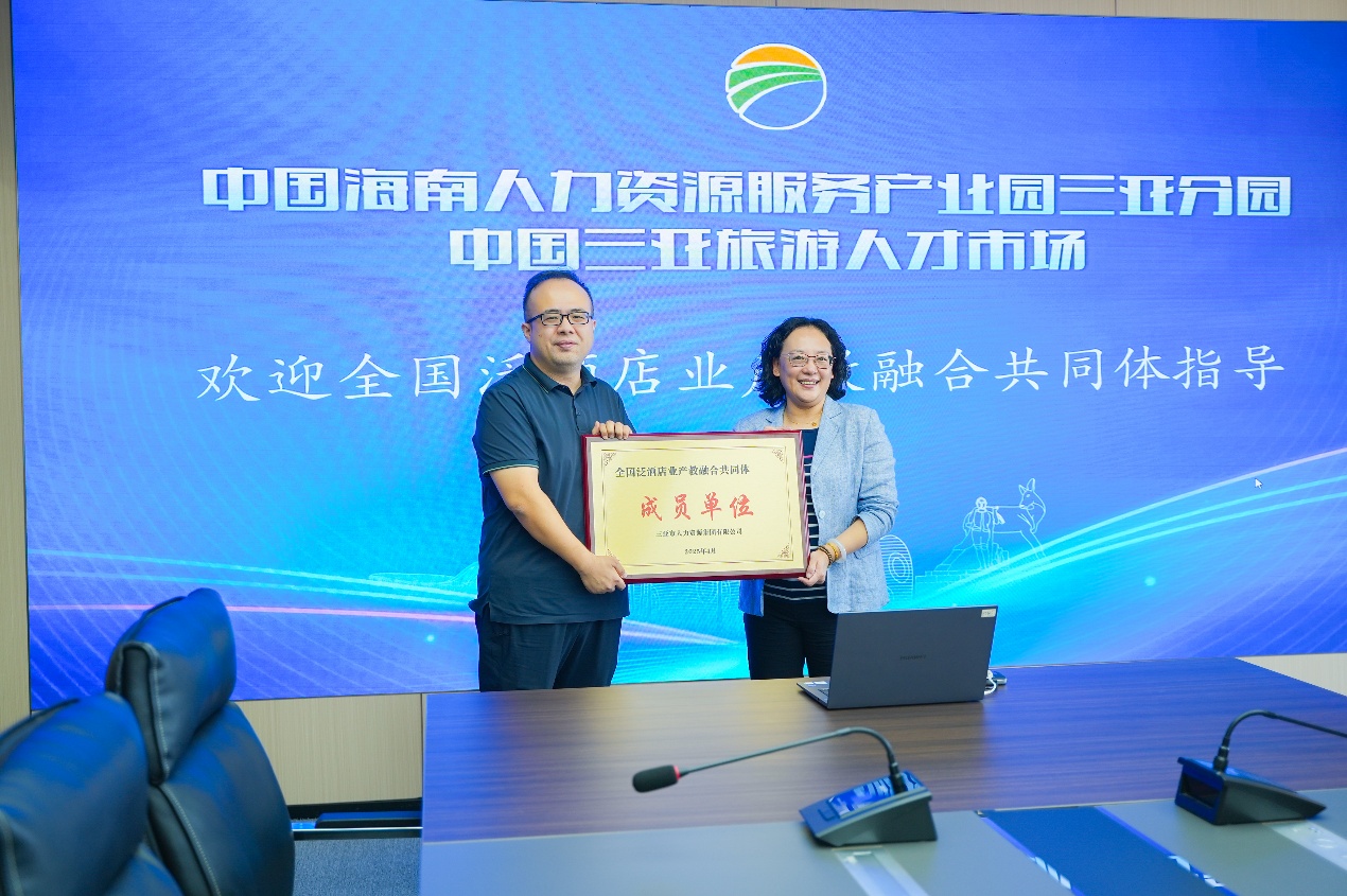 在座谈会上,双方围绕文旅人才联盟建设、旅游专家库构建、联合发布文旅人才供需白皮书等议题展开深入交流。与会代表一致认为,在海南自贸港建设背景下,文旅产业迎来新发展机遇,人才培育与储备成为关键环节。双方还探讨了海外人才招聘、联合开展师资及行业培训等合作方向,致力于打造全方位、多层次的校企合作新模式。会后,劳晓芸代表共同体向集团进行了授牌仪式。
