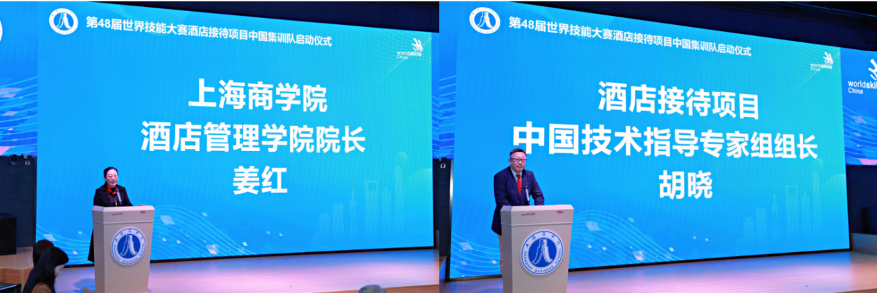1月28日至30日,第48届世界技能大赛酒店接待项目中国集训队首轮集训暨启动仪式在上海商学院成功举办。来自全国层层选拔脱颖而出的10名优秀选手及项目教练团队齐聚现场,上海商学院党委副书记陈晓峰,上海市职业技能鉴定中心副主任高占峰,上海商学院教务处处长栾东庆、教务处副处长谈嵘,第48届世赛酒店接待项目中国技术指导专家组组长胡晓,上海基地负责人上海商学院酒店管理学院院长姜红、杭州基地代表杭州第一技师学院教务处副处长张建红、江西基地代表江西省电子商务高级技工学校教研室主任熊铭贵、河南基地代表郑州商业技师学院餐饮旅游学院党支部书记朱长征、云南基地代表云南交通技师学院公共服务与管理学院院长白东、横琴基地代表横琴粤澳深度合作区民生事务局社会保障处副处长王锦涛等共同出席,正式拉开本届世赛酒店接待项目全国备战的序幕。