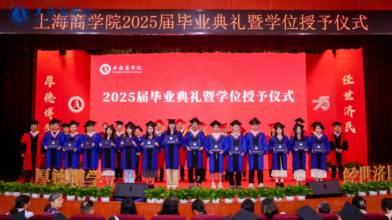 绿荫如盖,万里鹏程。6月10日上午九点,“扬帆奋楫新征程 青春建功新时代”——上海商学院2025届毕业典礼暨学位授予仪式于奉浦校区146报告厅(主会场)、各分会场以及网络直播平台同步举行。校党委书记沈大明,校长吴忠,党委副书记陈晓峰,党委副书记、纪委书记张洁,副校长张绍华以及各二级学院、职能部门负责人,毕业生代表、教师代表,校友代表、家长代表出席毕业典礼,共同见证和分享2025届毕业生顺利完成学业、开启人生新篇章的欢欣与喜悦。典礼由党委副书记、副校长劳晓芸主持,分为回望母校千重锦、铭记师心万里灯、长歌踏浪赴新程三个篇章。