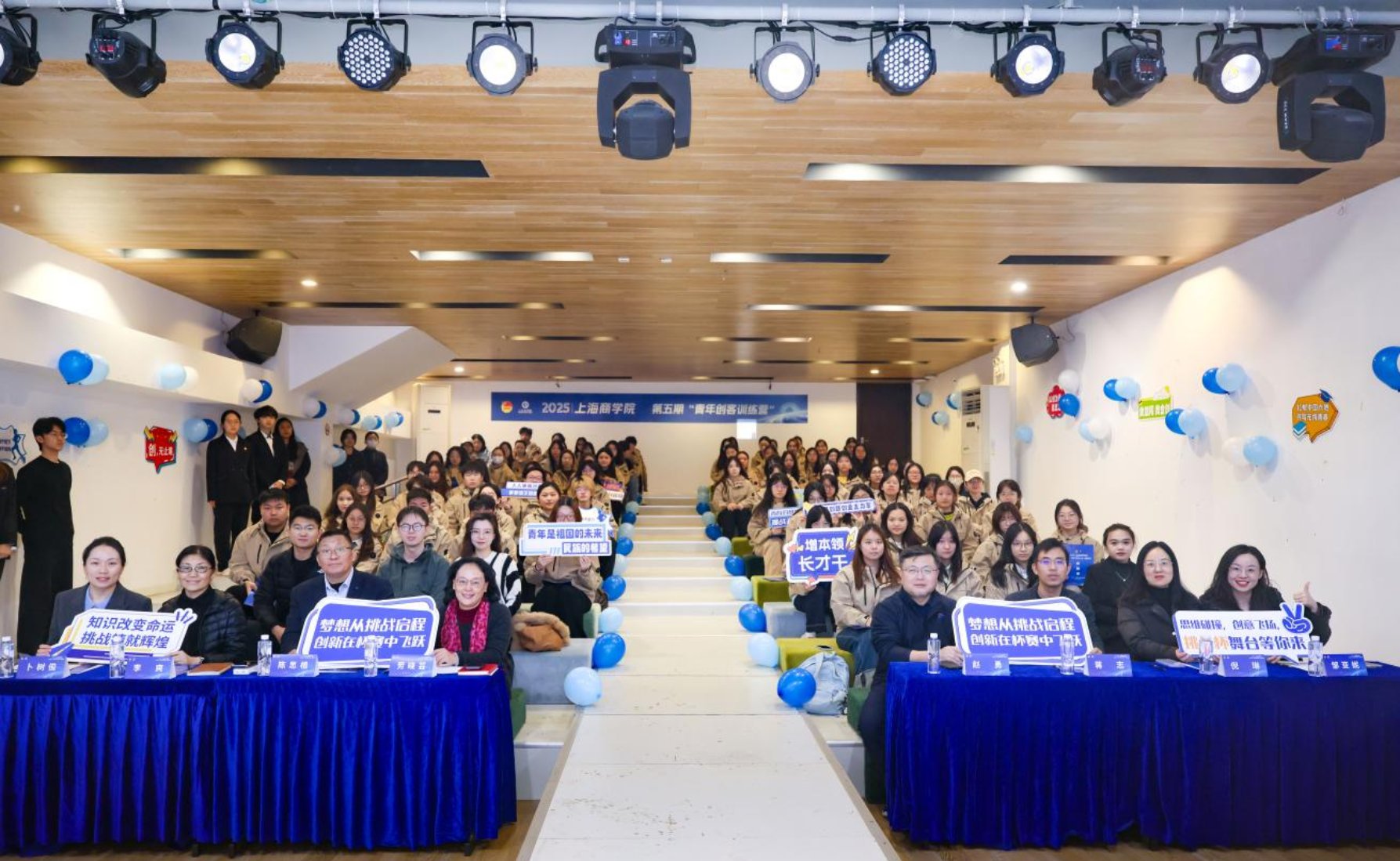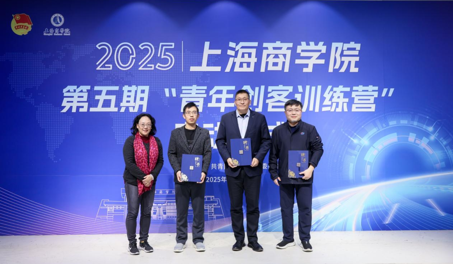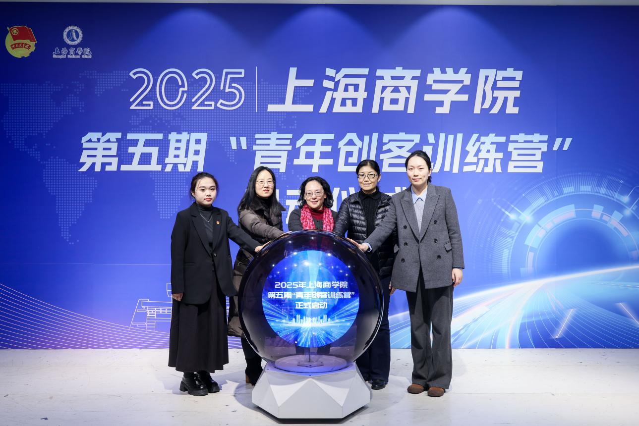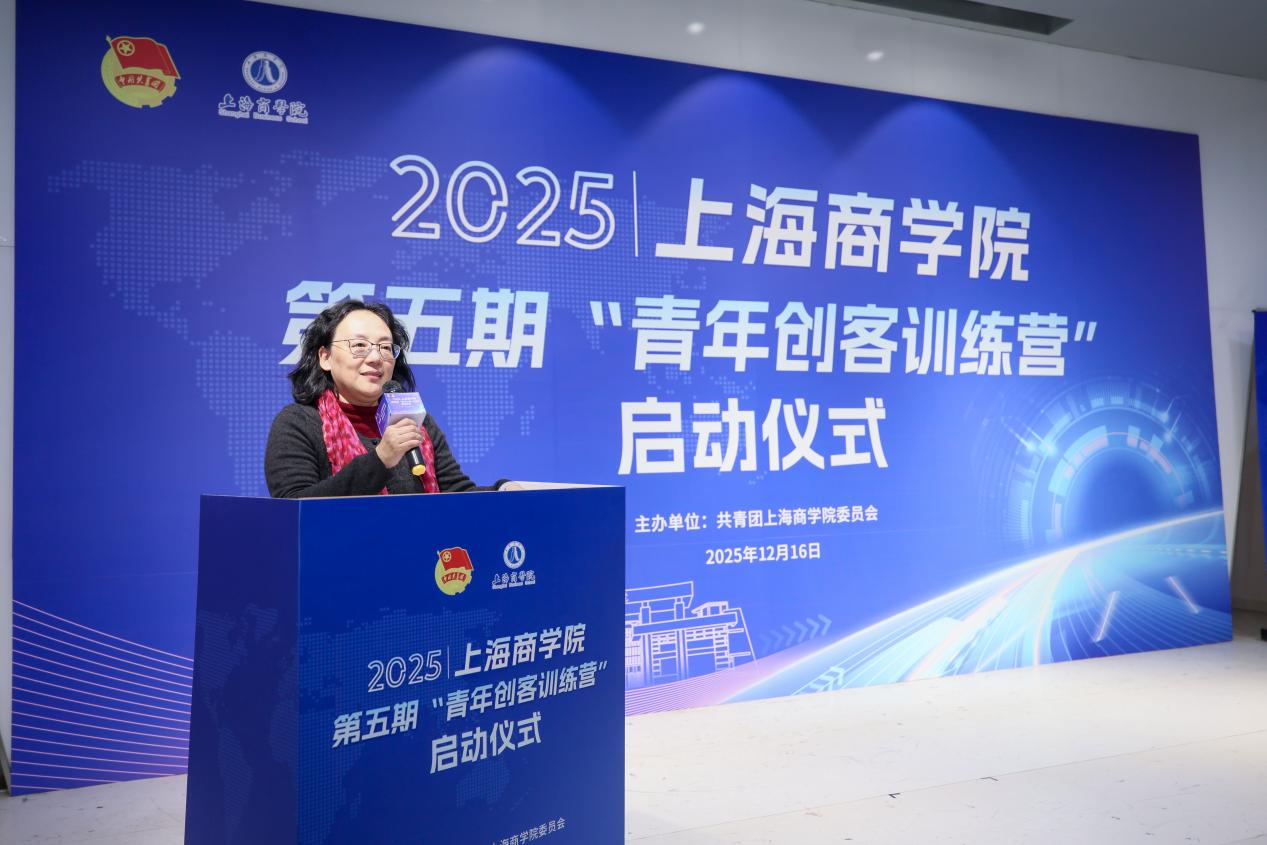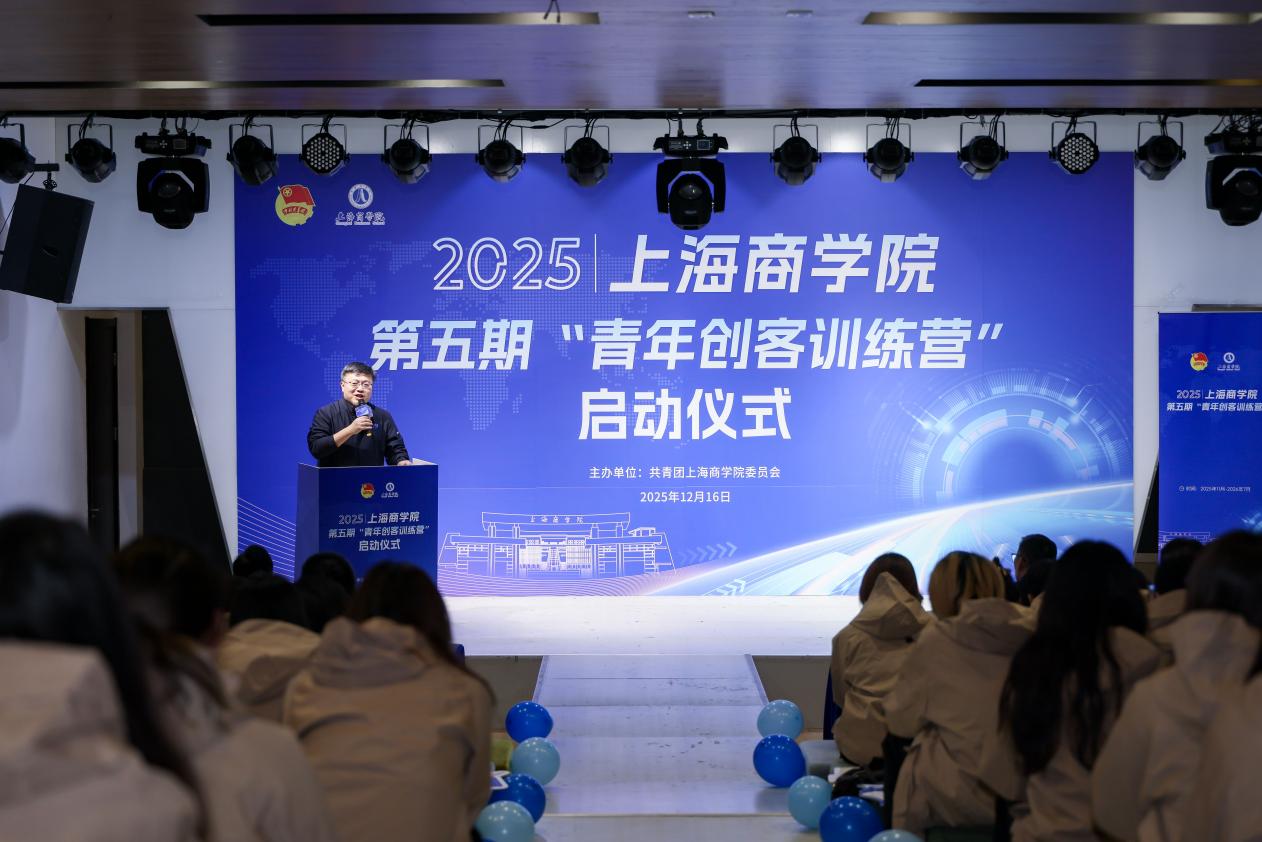 校党委副书记、副校长劳晓芸,党委学工部部长、学生处处长李爽,教务处副处长倪琳,校团委书记、党委学工部副部长卜树俊、创新创业学生代表黄祖蓉共同启动2025年上海商学院第五期“青年创客训练营”,期待上商青年创客在训练营中,以创意为帆、以实干为桨,在思维碰撞中点燃灵感火花,在项目实践中锤炼创业本领,共同书写属于青春的创新篇章!
