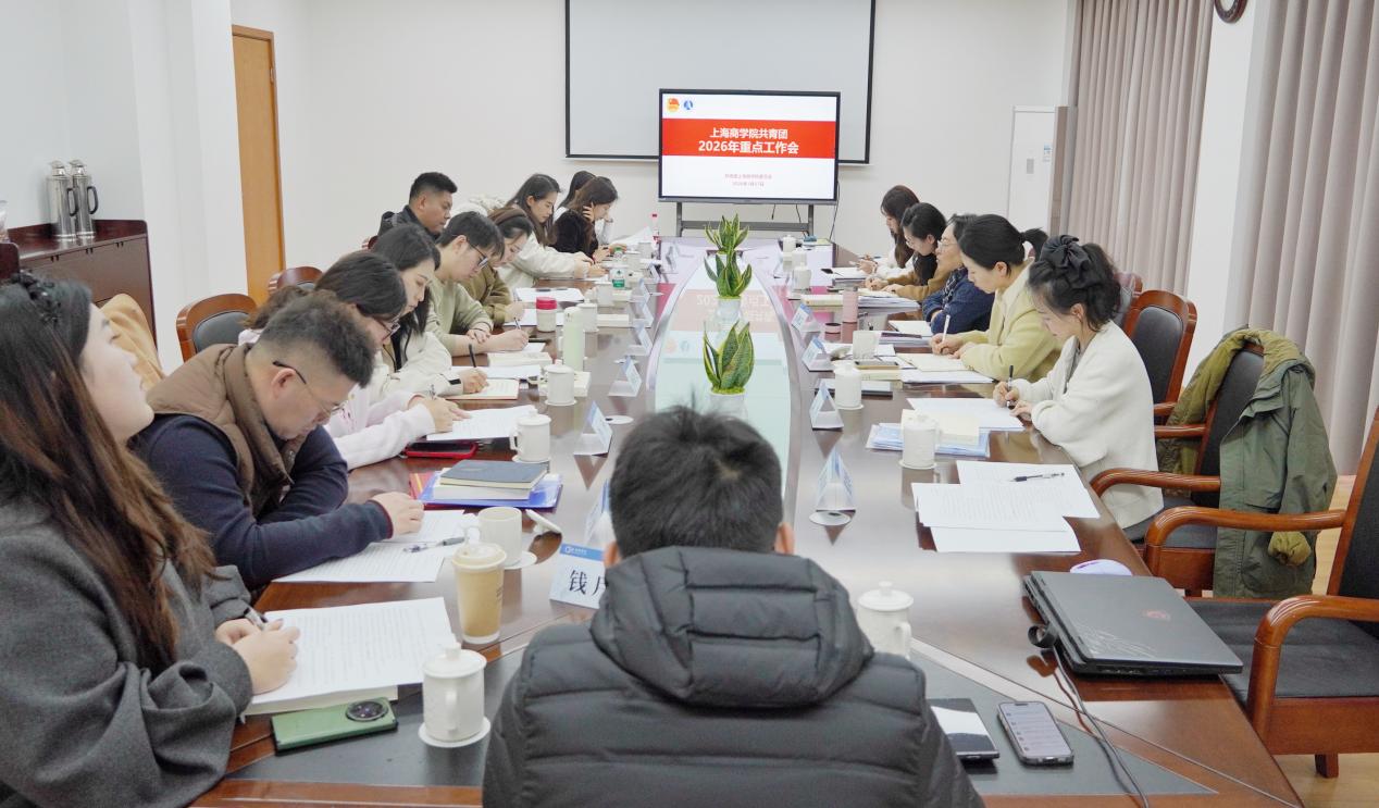 卜树俊传达了中共上海商学院第一届委员会第十一次全体(扩大)会议、共青团上海市第十六届委员会第五次全体会议等相关会议精神,并对我校共青团2026年度重点工作进行详细介绍,强调要扎实推进思想引领、实践育人、服务青年与全面从严管团治团各项工作,要求紧扣中心、贴近青年、守牢底线、真抓实干,不断提升上商团学工作质量与水平。校团委各位老师围绕“挑战杯”、五四评选、宣传思想文化工作、团员发展、“一站式”建设、大艺展、“知行杯”、社团管理、西部计划、学代会等近期重点任务作具体介绍。会上,对“第二课堂”情况开展专题研讨交流,并发布了上海商学院共青团2025年度工作总结评价成绩单。
