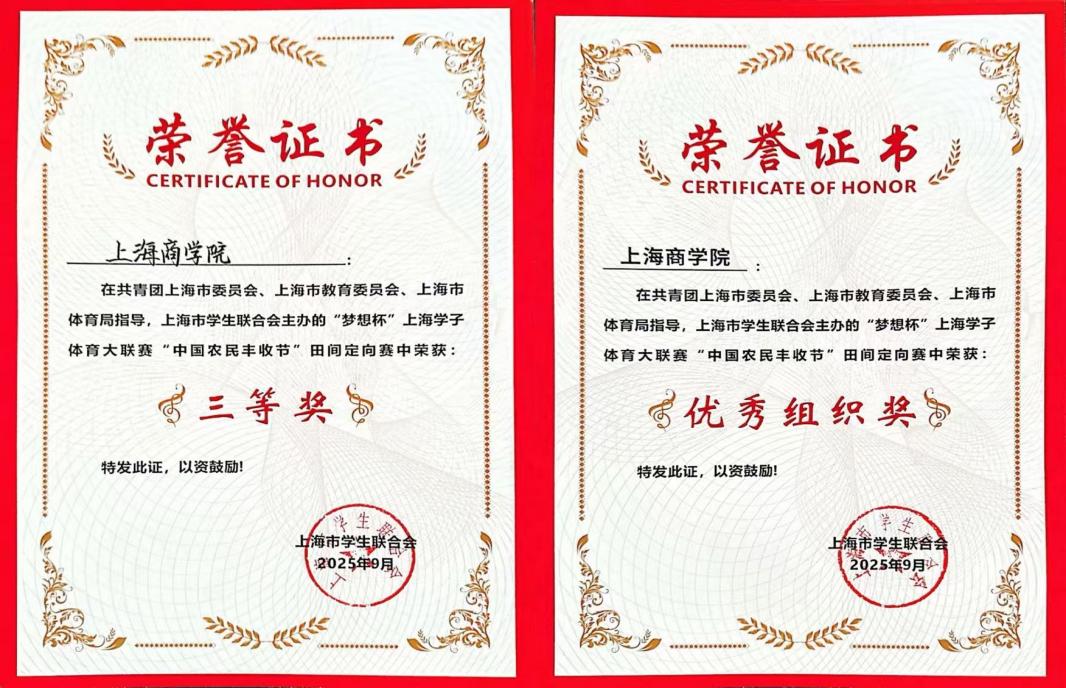 金秋的田野铺展丰收画卷,耕耘的喜悦浸润人心。9月20日,“梦想杯”上海学子体育大联赛“中国农民丰收节”田间定向赛在上海农林职业技术学院实训基地举办,40所高校近500名师生共同参与,通过实践的方式,领略农耕文化的独特魅力,感受耕耘的艰辛,共绘秋收华章。我校团队在此次活动中荣获三等奖,学校荣获优秀组织奖。