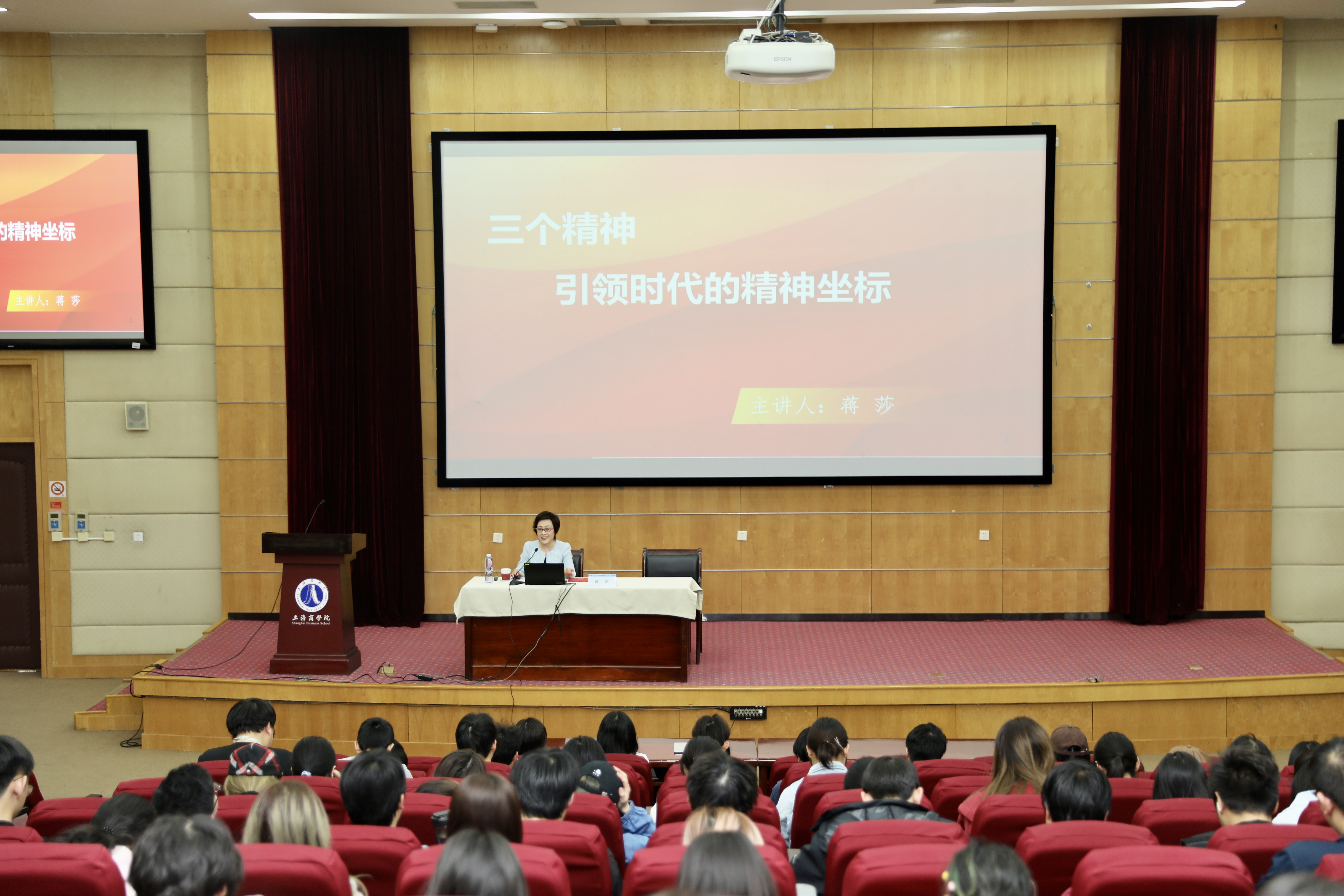 课堂上,蒋馆长以知识型工人的楷模李斌、《梁祝》首演者小提琴演奏家俞丽拿、航天工匠胡双钱的事迹为例,结合个人的工作经历,叙述了他们在自己的岗位上,书写着不平凡的人生,用劳模精神,砥砺奋斗,靠劳动精神成就梦想,以工匠精神追求卓越,向青年学子诠释了共产党员的初心使命和“三个精神”的时代价值,强调了学习“三个精神”的重要性。