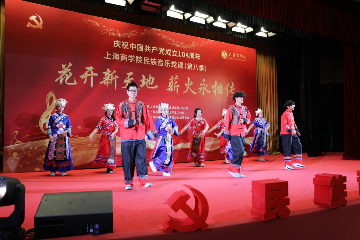 “花开新天地 薪火永相传”上海商学院民族音乐党课(第八季)顺利闭幕,本次党课以音乐为媒,在习近平新时代中国特色社会主义思想的指导下,聚焦庆祝中国共产党成立104周年,围绕深入贯彻中央八项规定精神学习教育,成功打造了一堂生动鲜活的思政教育课。通过三个篇章的精彩演绎,将红色基因、学习教育、传统文化与时代精神有机融合,既展现了中华文化的深厚底蕴,又彰显了新时代青年的使命担当。本次音乐党课为庆祝中国共产党成立104周年献上了一份饱含深情的贺礼,也为学校落实立德树人根本任务、培养担当民族复兴大任的时代新人注入了强劲动力。