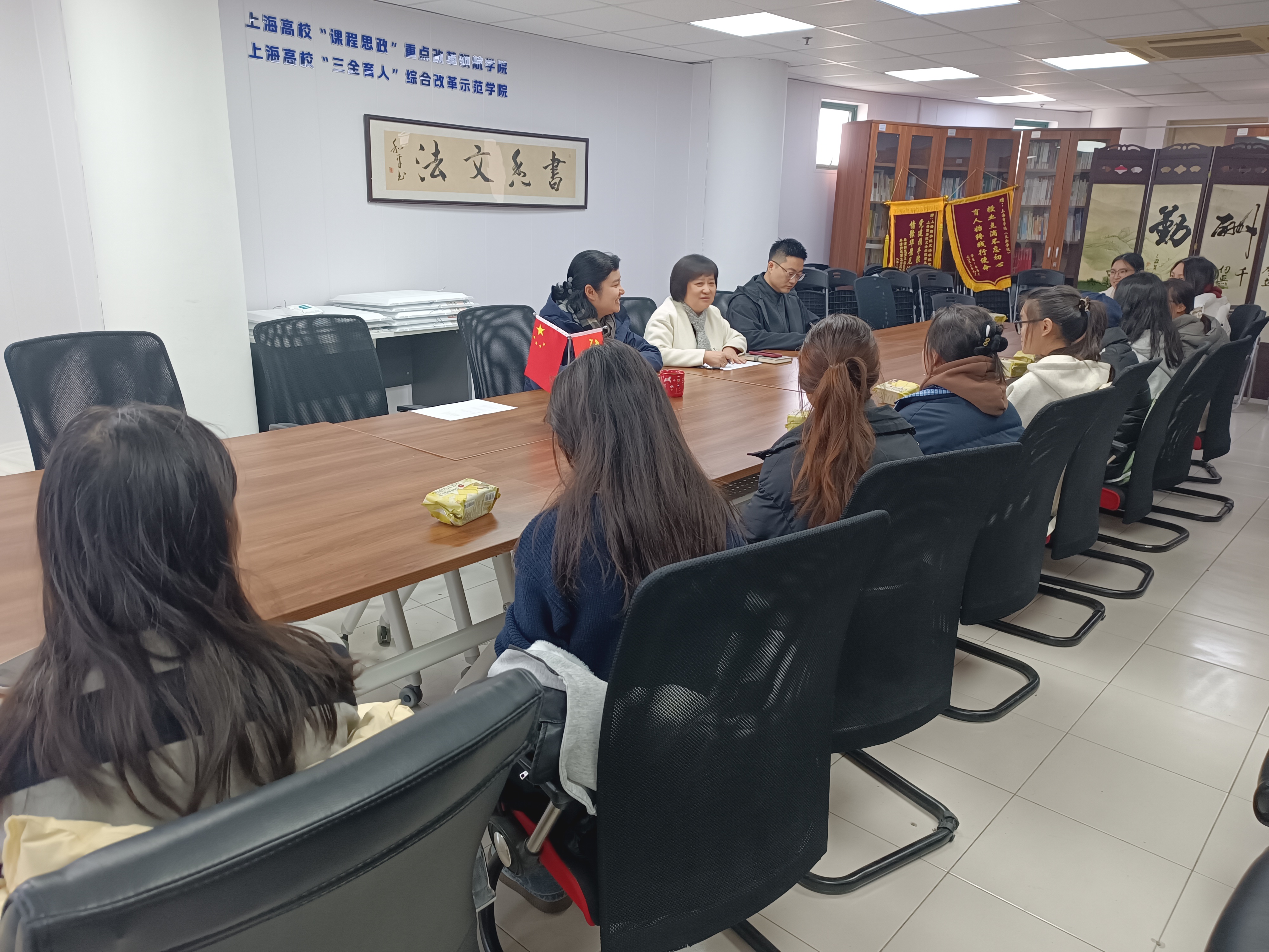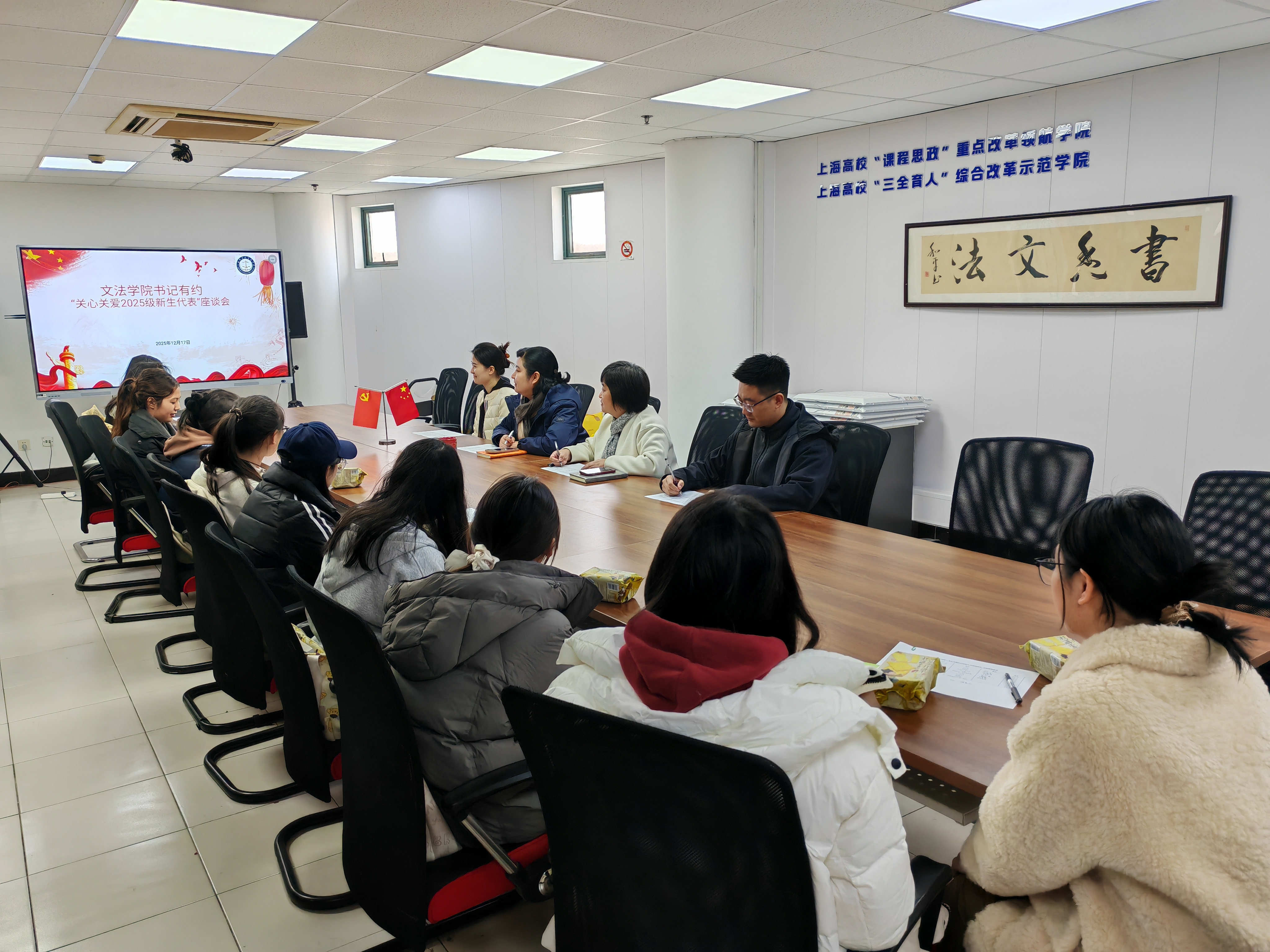 12月17日,文法学院“书记有约——关心关爱2025级新生代表”座谈会顺利召开。学院党总支书记朱永莉、党总支副书记林丽娜、资助专项负责人陆曼兮、辅导员董健鹏,与2025级新生代表共同出席本次座谈会,会议由林丽娜主持。