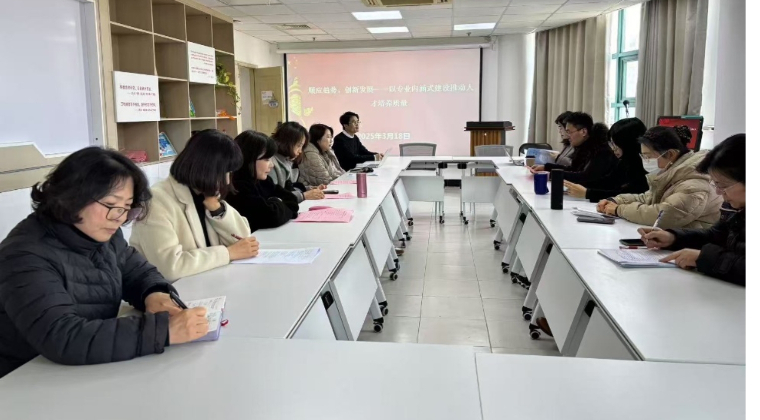 为强化党建引领专业发展,3月18日中午,商务外语学院朝鲜语系于行政楼407会议室召开专业建设专题研讨会,全系教师围绕“党建赋能教育创新——以OBE理念推动新时代人才培养质量提升”主题展开深入研讨。系主任崔海燕主持会议,强调要将OBE(成果导向教育)理念与红色基因传承深度融合,构建与国家战略需求同频共振的“语言+科技+思政”三位一体专业体系。