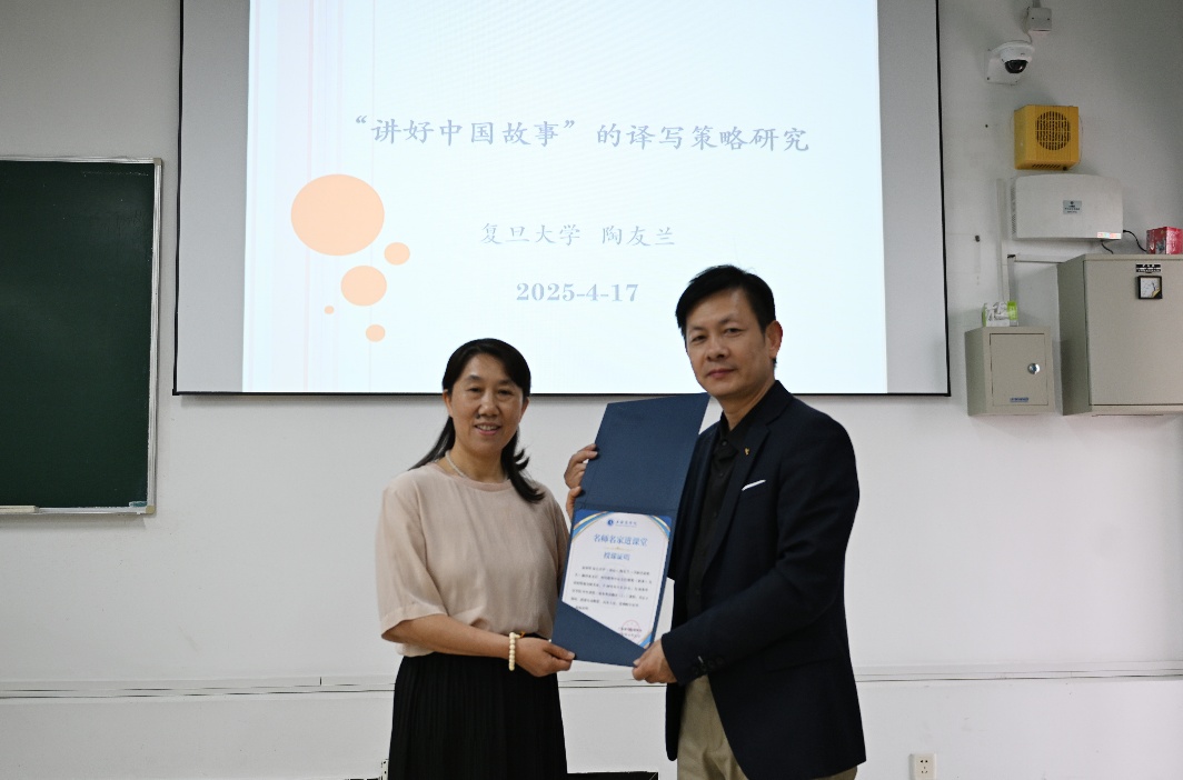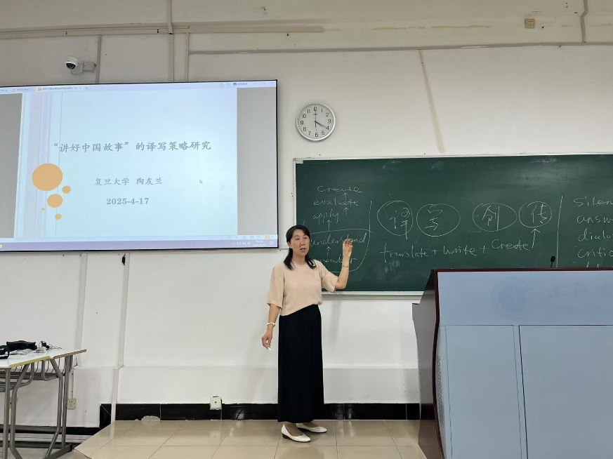 4月17日下午,复旦大学翻译系系主任、翻译硕士(MTI)教育中心主任陶友兰教授应邀走进商务外语学院商务英语专业2022级的《商务英语翻译》课堂,为同学们带来“讲好中国故事的译写策略研究”的精彩授课。