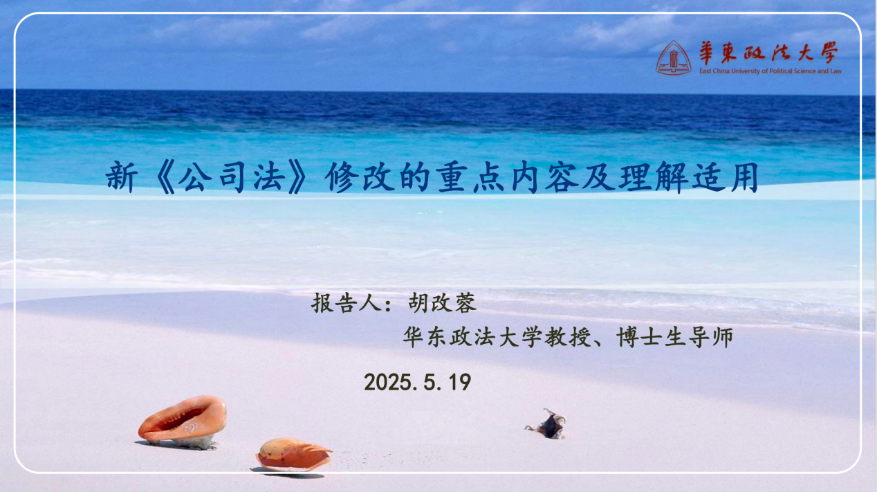 2025年5月19日,华东政法大学经济法学院胡改蓉教授以《新〈公司法〉修改的重点内容及理解适用》为我校学生授课。胡改蓉教授是中国法学会商法学研究会理事、上海市法学会经济法学研究会秘书长、上海市法学会商法学研究会理事。曾荣获上海市教育系统三八红旗手、上海市级教学成果奖一等奖(合作申报)、上海市哲学社会科学优秀成果奖二等奖。此次授课系我校组织的“名师名家进课堂”系列活动之一,授课活动由经济法律通论主讲教师石达主持。