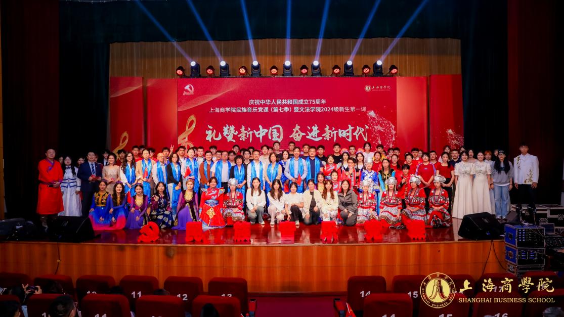 礼赞新中国 奋进新时代——庆祝中华人民共和国成立75周年上海商学院民族音乐党课(第七季)暨文法学院2024级新生第一课顺利闭幕!