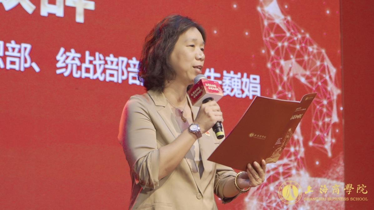图为上海商学院党委常委、党委组织部、统战部部长朱巍娟致辞