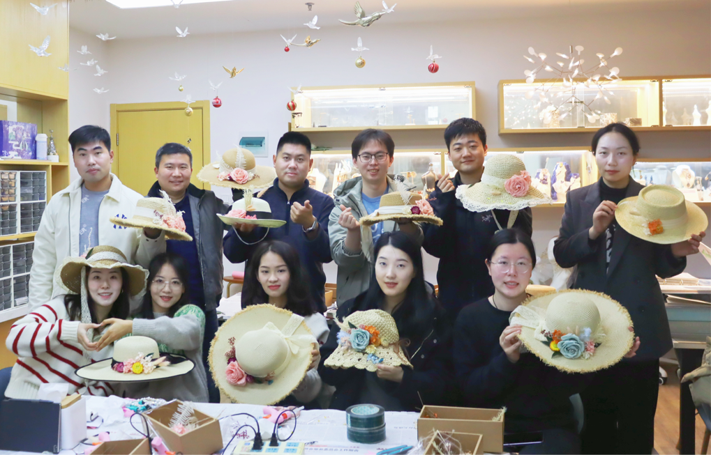 活动尾声,与会者在刘燕的带领下,实地参观了艺术设计学院团学工作场地及成果,并参与永生花社组织的“草帽设计体验”。这一环节不仅展现了艺术设计学院“商艺融通”的育人特色,更带领大家近距离走进学院特色社团,沉浸式感受“第二课堂+专业”的魅力与生命力。 大家纷纷表示要努力增强本学院学科专业类社团的建设,提升第二课堂育人实效。