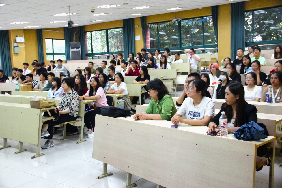 随后,宫霞教授对我校食品专业的沿革、概况进一步作了简要介绍,并对食品系新生提出要求和寄语。宫教授首先祝贺同学们进入大学,开启人生新篇章。她说:“要注意大学生活不同于高中生活,对学生的自我控制能力和自我学习能力要求更高,对学生的教育、培养和考查也更全面、更立体。”她叮嘱2024级新生们,食品质量与安全专业是工科专业,在校学习期间需要掌握一些基础知识和专业技术,这对未来的就业和职业生涯十分重要,大一新生要力戒散漫思想,要将主要精力放在专业知识的学习上,希望同学们在校期间做好自我时间管理,合理安排好各项活动,也希望同学们在接下去的四年中都能心有所向、学有所成。美好的祝福引发同学们热情的鼓掌。