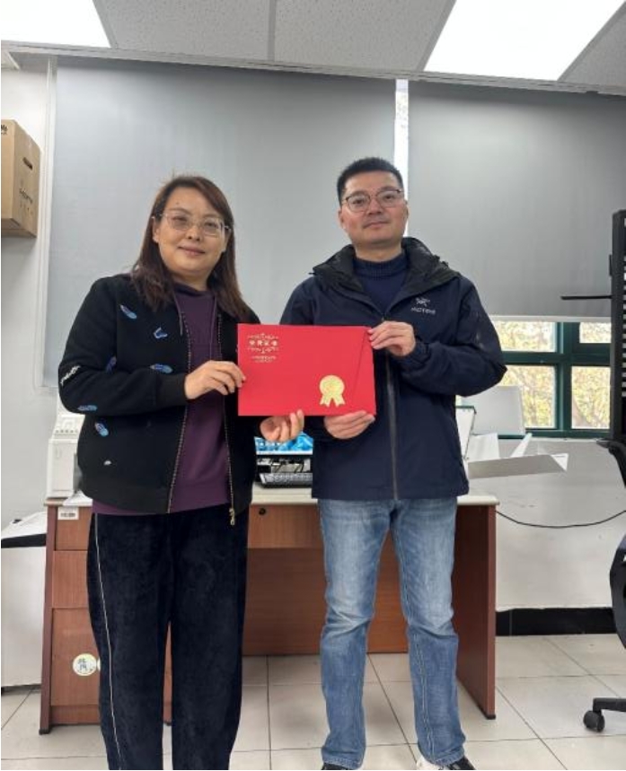 图为会计系张姣芳老师为黄坤专家颁发荣誉证书