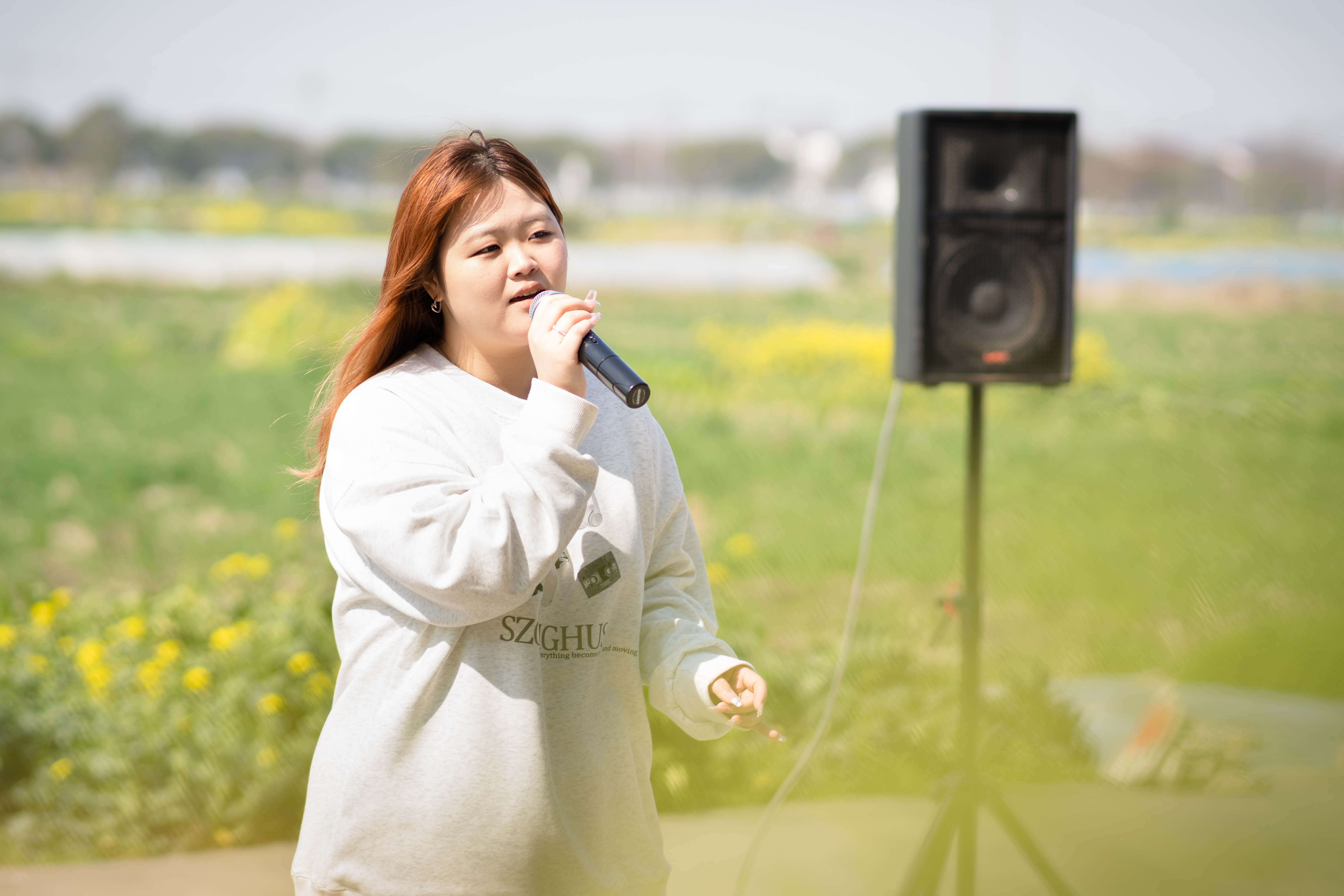 在春意盎然的田间地头,伴随着沪语主持的亲切乡音,我校艺术团学子倾情献艺。毛健霖、耿婷婷同学演绎的经典曲目《你最珍贵》深情款款,周家怡、奚雨彤同学带来的《你的珍藏》婉转动人,熟悉的旋律唤起现场观众的情感共鸣,赢得阵阵热烈掌声。艺术团成员们用专业素养和青春热情,为活动现场增添了浓厚的艺术氛围。