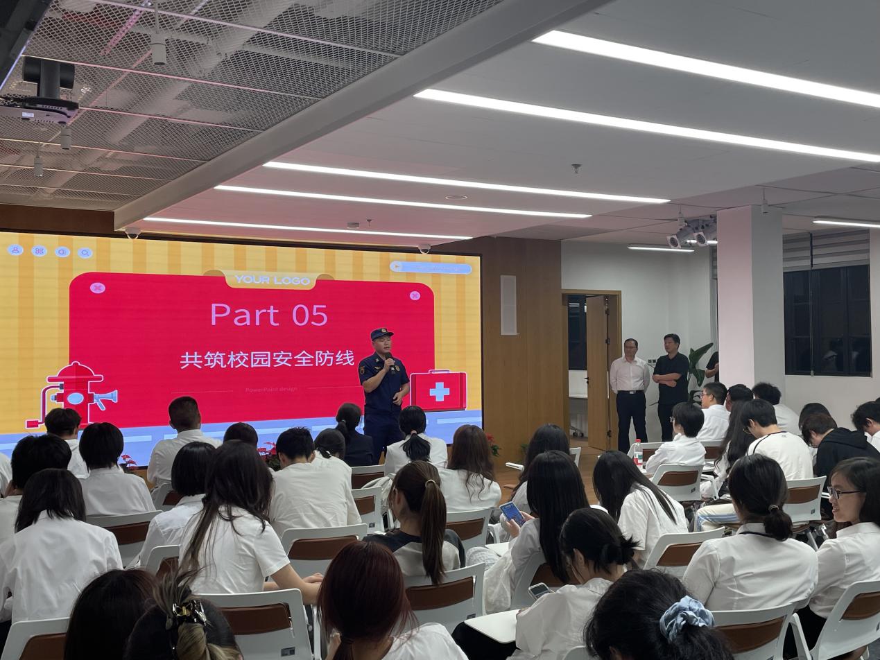 会议伊始,上海洛桑酒店管理学院副院长黄欢强调了消防安全意识的重要性,随后,消防专管负责人王飞及徐汇区漕河泾消防救援站吴泽教官以PPT授课,讲解火灾成因、消防器材使用、高层逃生误区等内容,通过互动答疑强化认知。理论教学结束后,新生返回宿舍楼待命开展消防逃生演练。