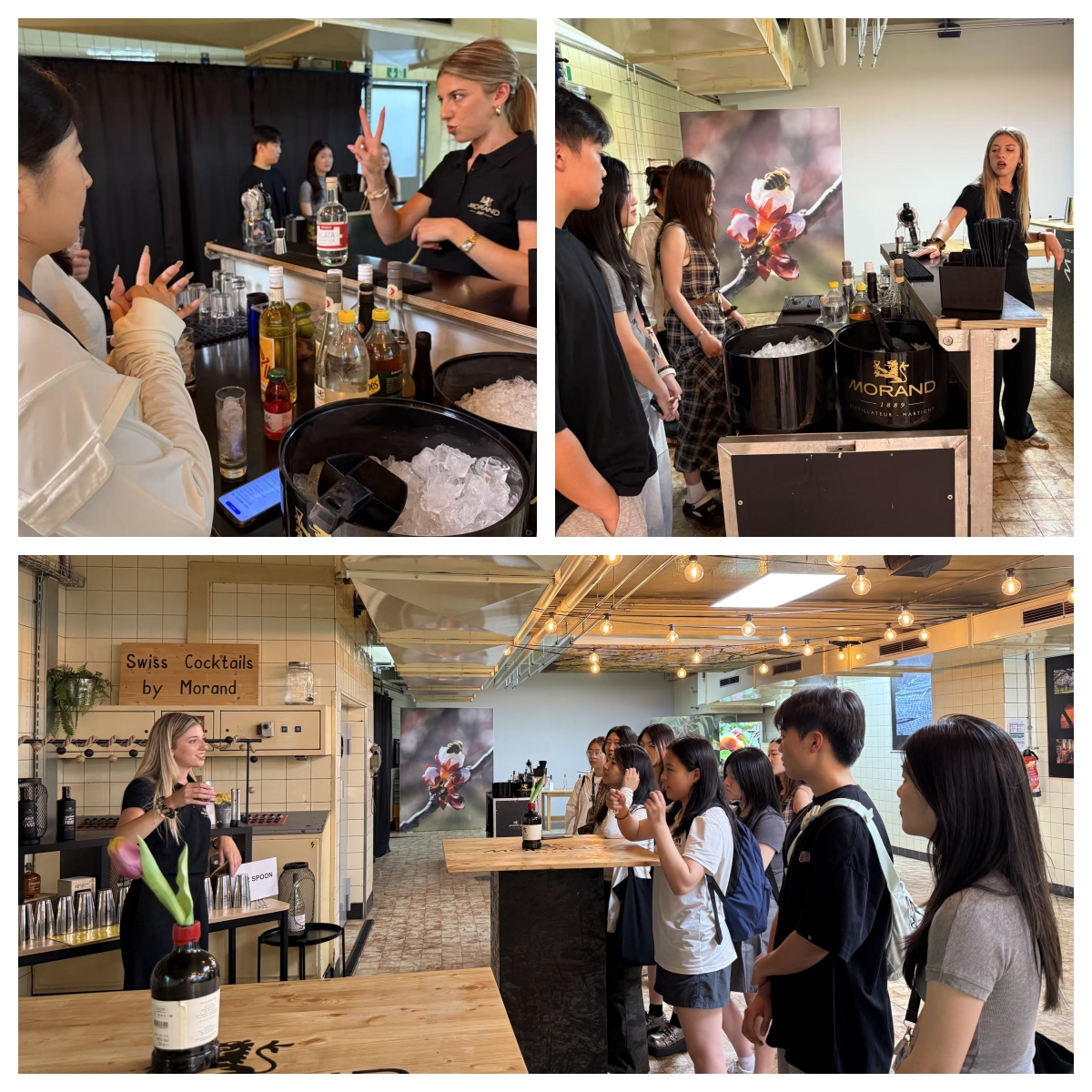强化实践能力是本次研学的重中之重。研学团走出教室,将整个瑞士作为学习的广阔天地。在被联合国教科文组织列为世界遗产的拉沃葡萄园梯田,学生们了解了“三个太阳”的独特自然优势,品味了当地特色葡萄酒,感受到了文化遗产与自然景观的和谐共生。在参观凯雅巧克力工厂与格吕耶尔芝士工坊时,大家不仅见证了从原料到成品的精湛工艺,更深刻体会到瑞士“慢食文化”背后对匠心品质的执着坚守。此外,在Morand酿酒厂的调酒体验课上,学生们亲手调制创意饮品,将艺术审美与专业技能融为一体。