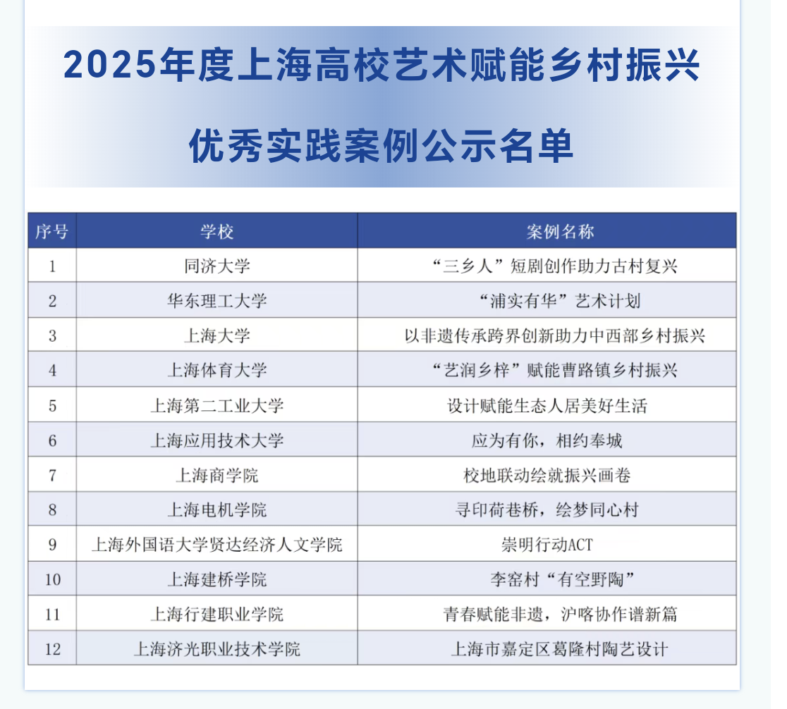 我校获评2025年上海高校艺术赋能乡村振兴案例征集活动“优秀实践案例”和“优秀组织奖”