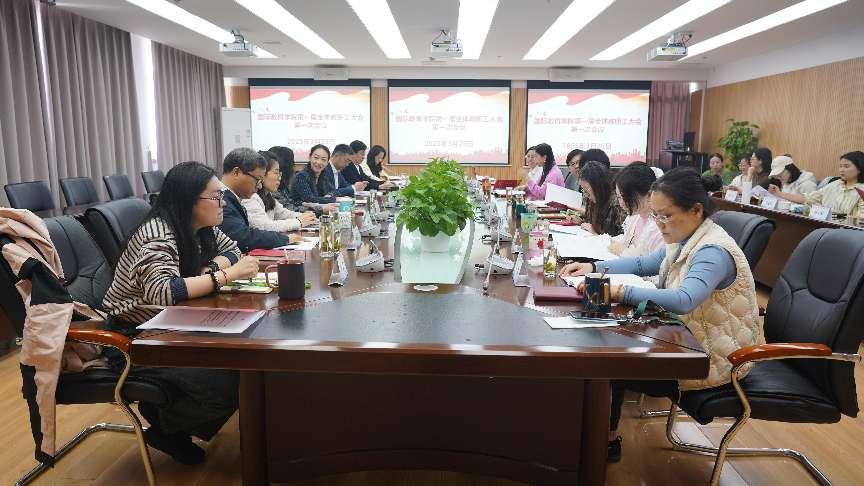 国际教育学院第一届全体教职工大会第一次会议于2025年3月25日在中山西路校区1501会议室召开,会议由国际教育学院直属党支部副书记周继红主持,国际教育学院直属党支部书记陈巍、院长刘斌、副院长戴莹及全体教职工参加,校工会副主席伊铭应邀出席。