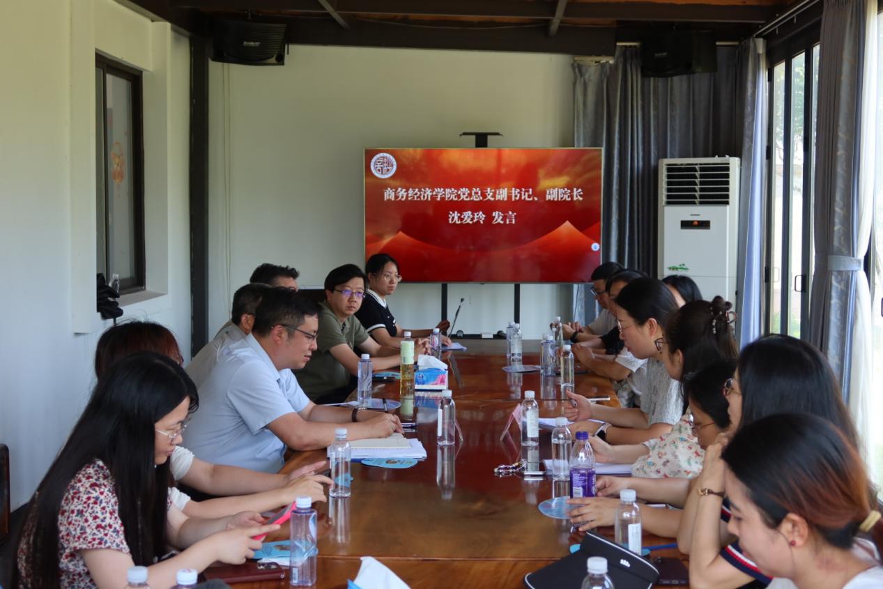 图为商务经济学院党总支副书记、副院长沈爱玲发言