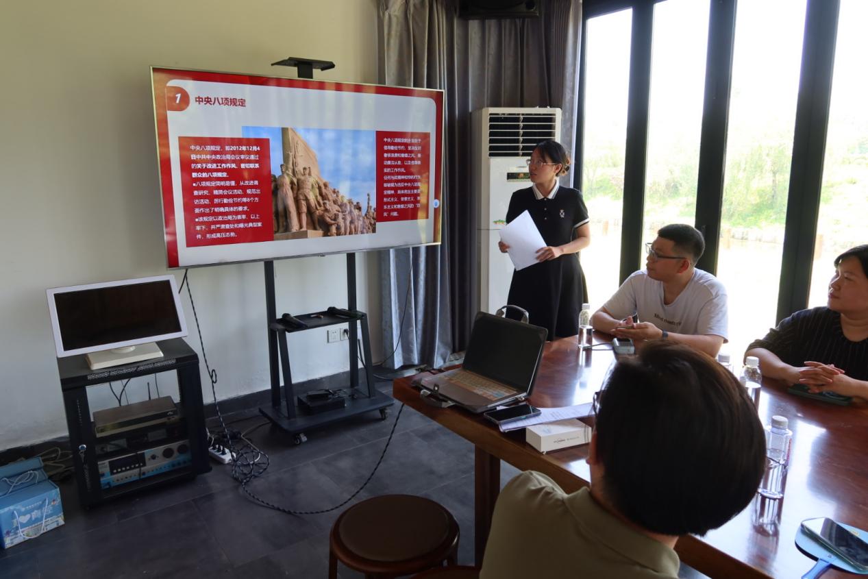 在联学环节,明星村党总支书记助理方媛进行了 “作风建设常抓不懈再出发 —— 深入贯彻中央八项规定精神学习教育” 微宣讲,带领与会教师深入学习中央八项规定及其实施细则精神,强化党员纪律意识,以思想学习推动作风建设。