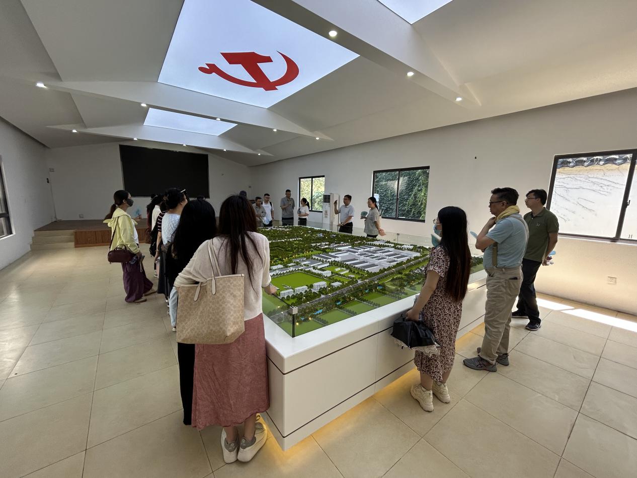 图为商务经济学院教师一行参观明星村乡村振兴沙盘展示厅