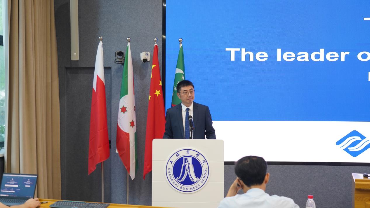 图为商务部国际商务官员研修基地(上海)副主任陈巍发言