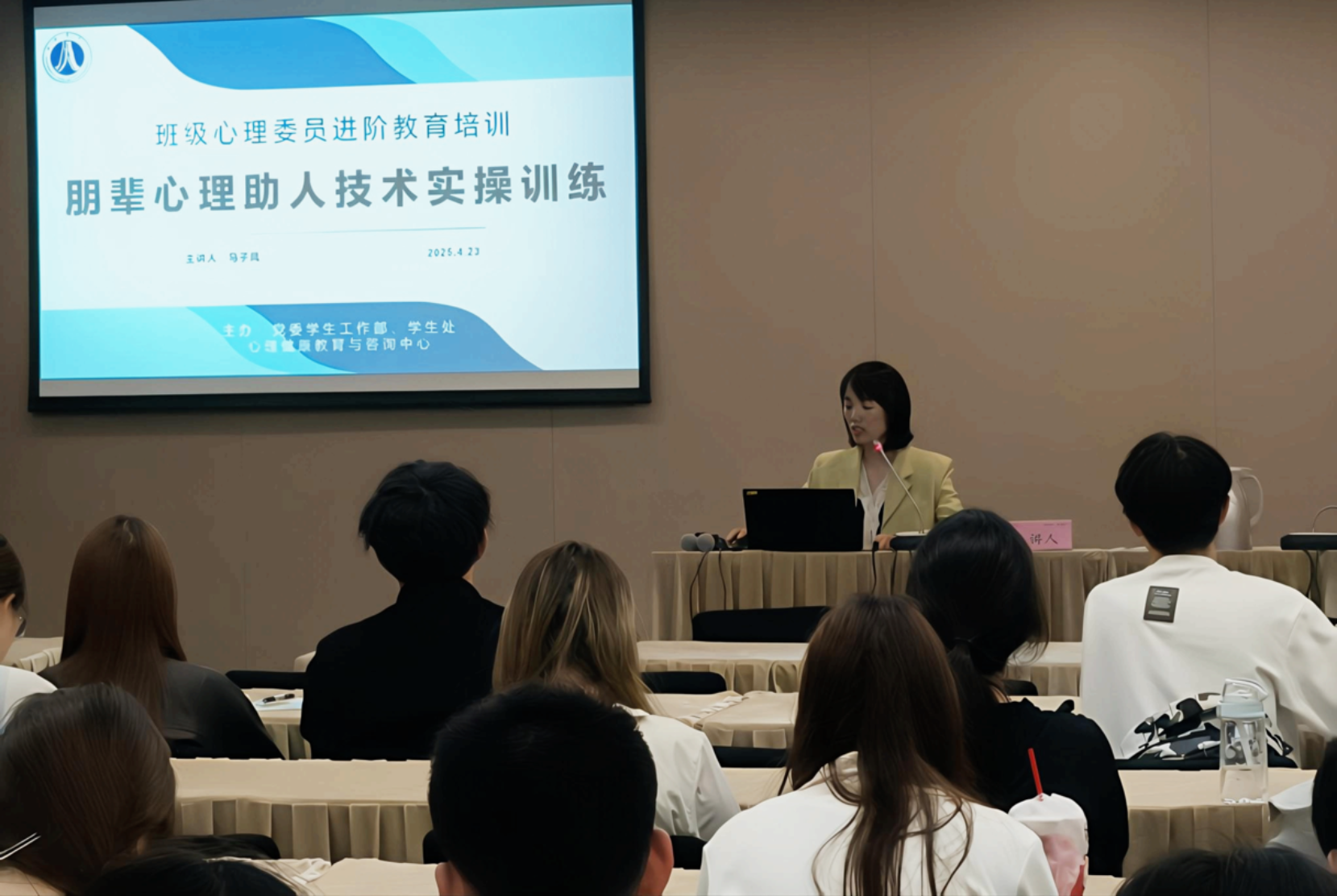 4月23日,党委学生工作部(处)心理健康教育与咨询中心组织开展了2024级班级心理委员进阶教育培训。本次培训以“朋辈心理助人技术实操训练”为主题,特邀上海旅游高等专科学校专职心理咨询师马子凤担任主讲,通过理论讲解与情景模拟相结合的方式,全面提升心理委员的专业素养和实践能力。2024级班级心理委员共60余人参加本次培训。