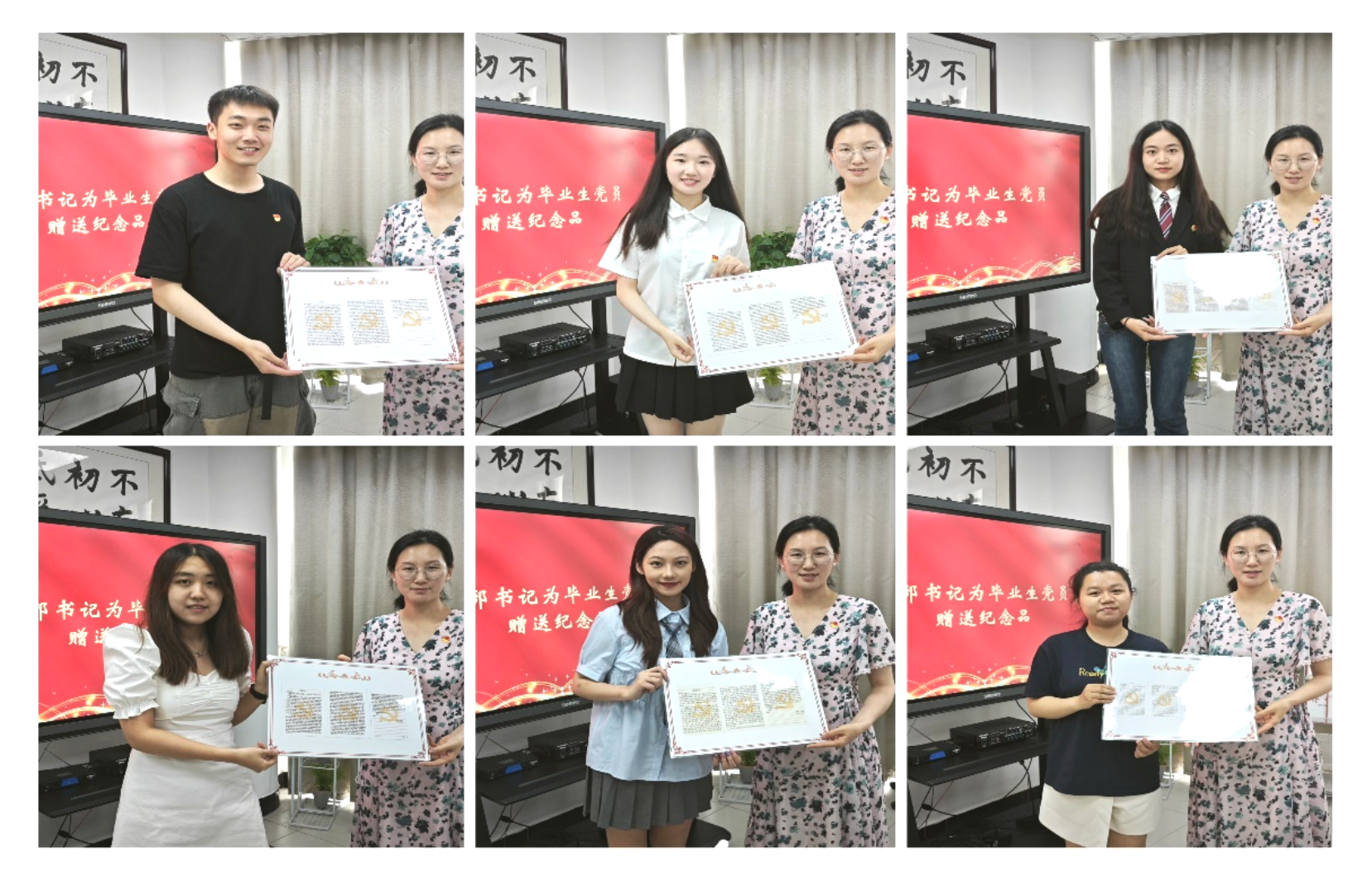 杨悦向毕业生党员们赠送了装裱版本的入党申请书,这既是对他们党员身份的认可与骄傲,也是对他们未来继续发光发热的期许与鼓励,更承载着学院的深切关怀与祝福。随后,全体党员重温了入党誓词。毕业生党员们作出庄严承诺,勇担社会责任,持续学习进步,维护党的纯洁,服务人民群众,助力国家发展,共创辉煌未来。