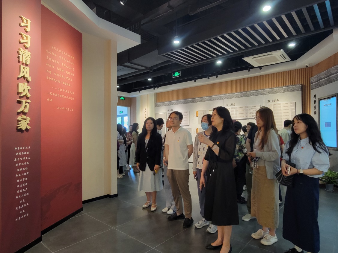 马院的党员同志们在正气馆内历代廉政名士与名人家风前讨论交流、驻足深思;在学习馆内新颁布的《中国共产党纪律处分条例》增写和修改内容的展牌前认真学习、内化于心;在警示馆内的十八大以来各级纪检监察机关办理的一个个典型案例前反思初心、坚定信念。