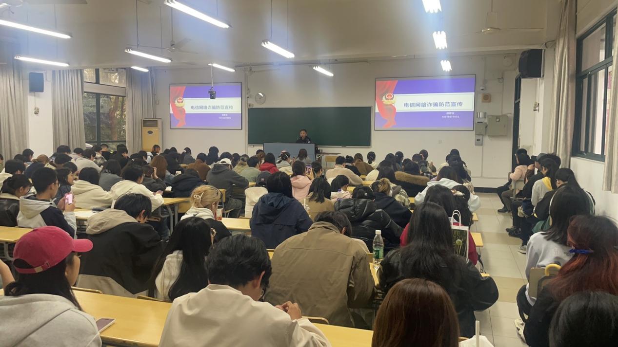 正值第十一个全民国家安全教育日来临之际,为进一步提升在校学生反诈防诈意识与安全防护能力,3月31日下午一点,学校保卫处联合商务经济学院,特邀奉浦派出所杨晓伟警官走进4教114教室,开展反诈专题宣讲活动。近200名同学到场参与,共筑校园安全坚固防线。