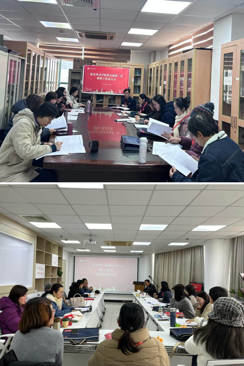 会议期间,代表们先后审议通过了《同心筑梦 情暖外院——2024年学院工会工作报告》、《2024年学院财务工作报告》,听取了《2024年学院年终奖励性绩效工资分配方案》、《商务外语学院专任教师年度绩效考核意见》。