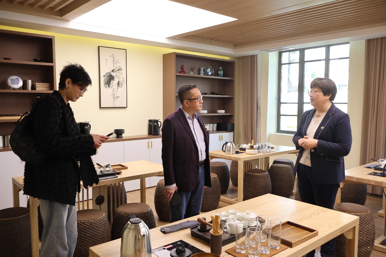 胡笑寒向罗斯福中国零售有限公司一行的到访表示欢迎。她简要介绍了学院办学历程。她表示,学院成功引入瑞士洛桑模式,强调了国际化资源整合和产教融合在学院人才培养中的重要作用。学院与罗斯福中国在泛服务业领域具有广泛的合作前景,现已开设《饮品鉴赏:茶、咖啡、葡萄酒及烈酒》课程和《葡萄酒的商业洞察》微专业,拟通过“一酒一茶一咖啡”串联到全产业链,希望双方不断加强交流、深化合作。