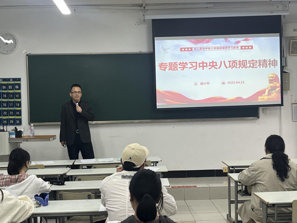 党课由酒店管理学院党总支书记邵小平授课,开展中央八项规定精神专题学习。培训中,邵书记深入解读中央八项规定精神,让学员清晰认识到规定是具体的行为准则,而精神是贯穿其中的价值导向与思想内核。此外,邵书记就违反中央八项规定精神问题分类及表现,结合实际案例,以生动鲜活的事例敲响警钟,让学员深刻认识到严守纪律规矩的重要性。他强调开展深入贯彻中央八项规定精神学习教育,是巩固深化主题教育和党纪学习教育成果、纵深推进全面从严治党的重要举措,是密切党群干群关系、巩固党的执政基础的必然要求,是推进中国式现代化的有力保障。大家要充分认识这次学习教育的重要意义,把精力投入学习和成长中,提升自身能力,严于律己,以更高的标准规范自身言行。