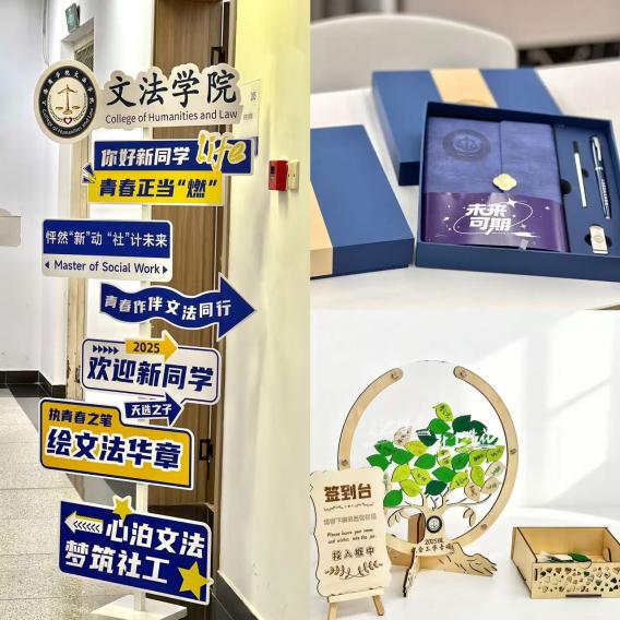 “执青春之笔,绘文法华章”、“心泊文法,梦筑社工”一句句欢迎标语,让新同学们迅速感受到来自学院的热情。学院为研究生新生精心打造了别具一格的迎新展板,以“文法厚土,社工生花”为深情寄语,饱含着对新同学们的美好祝愿与殷切期许,期待每一位学子都能在文法这片沃土之上,让社工之花绚烂绽放,开启属于自己的精彩学术与人生新篇。学院还为每一位新同学用心准备了“未来可期”专属学习包,为新生的学习与生活送上贴心且充满温度的支持。