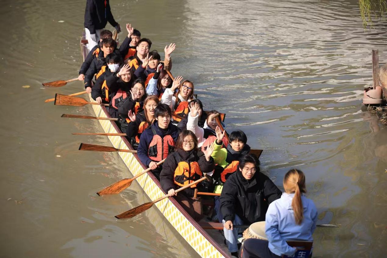 图为选手参加龙舟体验