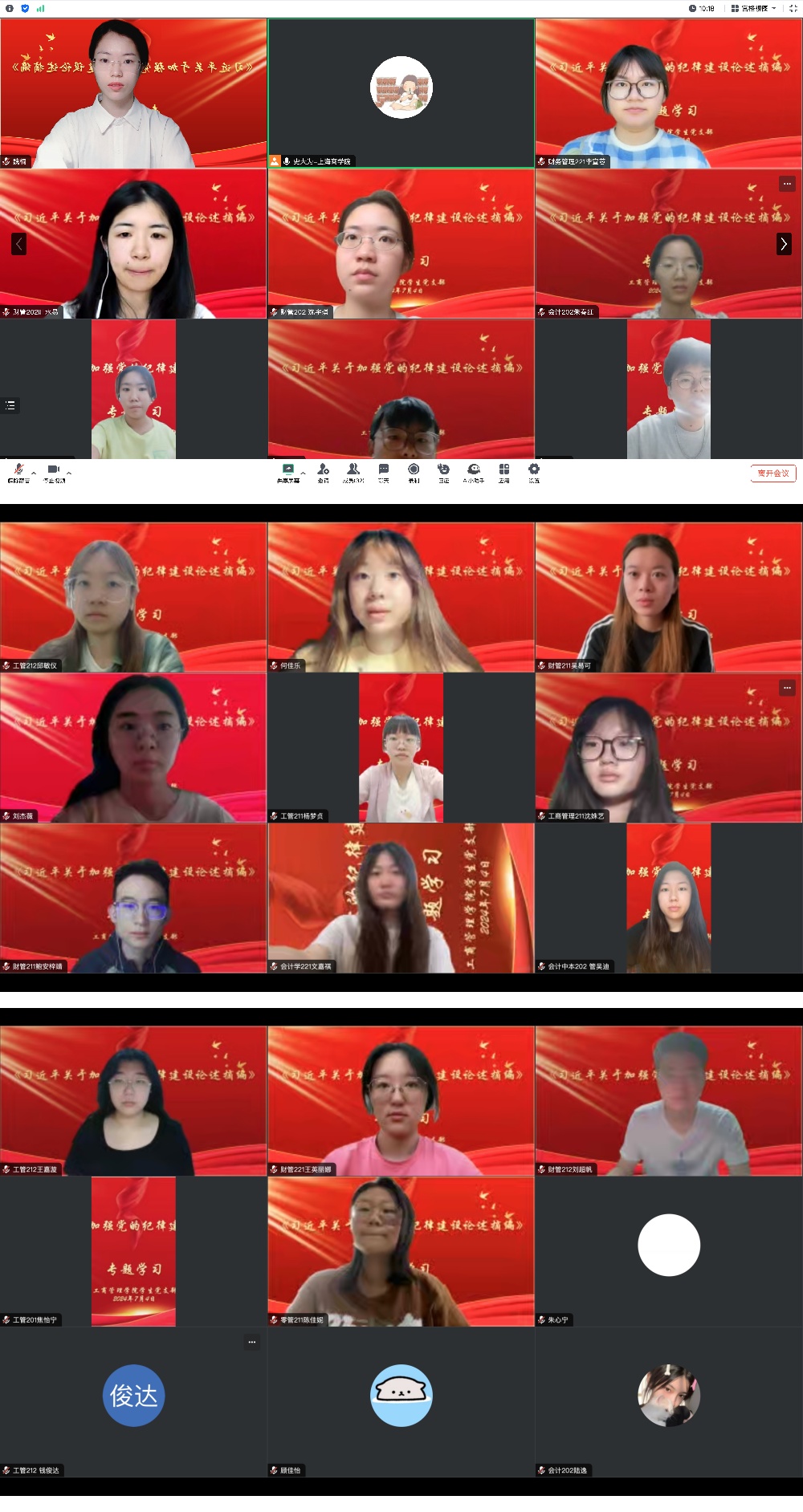 本次专题学习,把警示教育片《贪念》作为学生党支部党纪学习的首项内容,引导党员知敬畏、存戒惧、守底线,切实用党规党纪校正思想和行动。随后高雯领学《习近平关于全面加强党的纪律建设论述摘编》,并组织支部党员就《摘编》一书内容进行交流研讨。