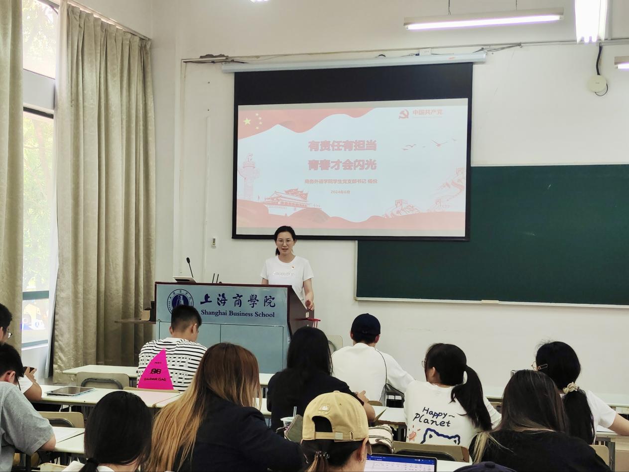 为深入贯彻落实习近平总书记关于党纪学习教育的重要讲话和重要指示精神,切实抓好党纪学习教育,6月4日下午,商务外语学院学生党支部在奉浦校区3号楼213教室入党积极分子培训班上开展党纪学习教育专题党课。党课由学生党支部书记杨悦主讲,支部全体党员以及商务外语学院、酒店管理学院、原财务金融学院新确定的入党积极分子参加了党课。